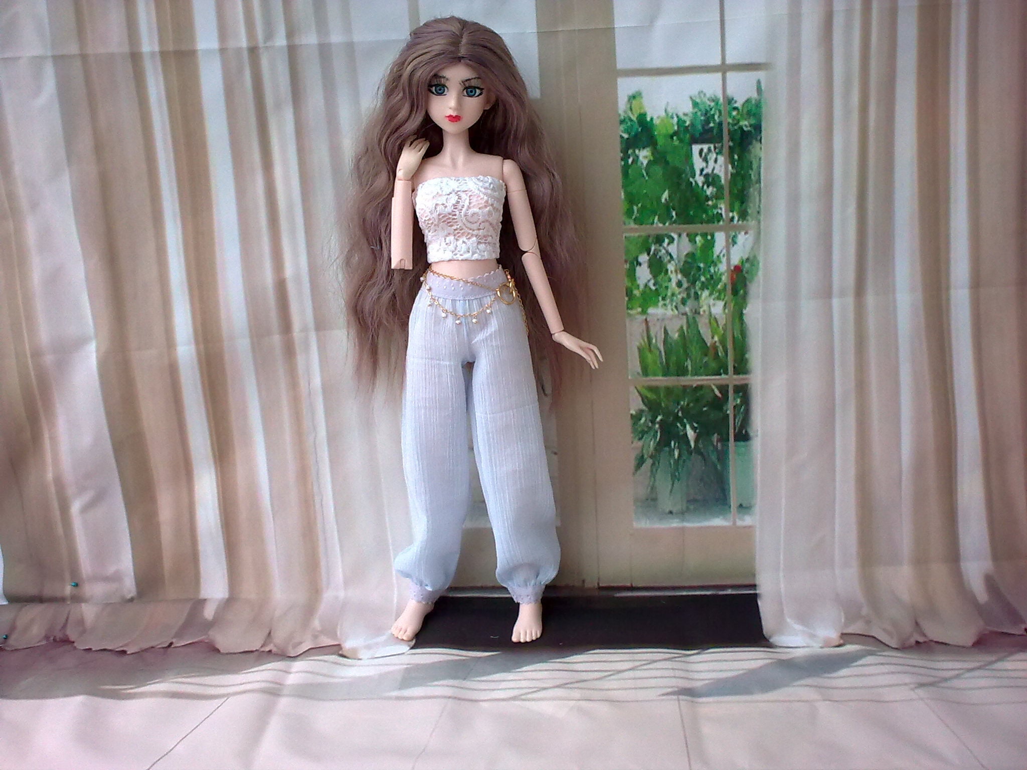 *bjd 1/4 msd FID Light blue muslin crepe pants Fantasy harem style for dolls 17”-18”/ 45cm (big minifee) and similar in size