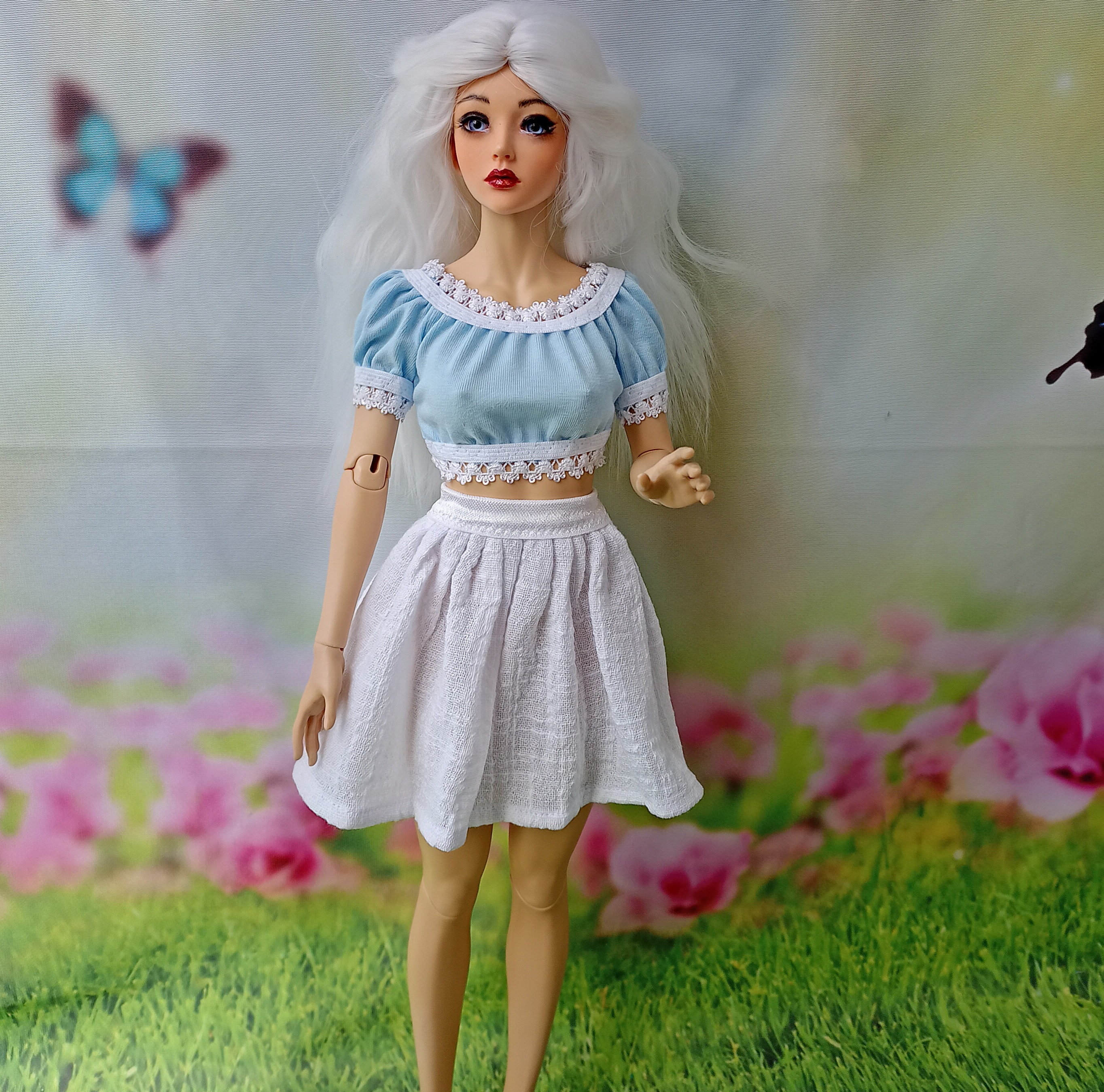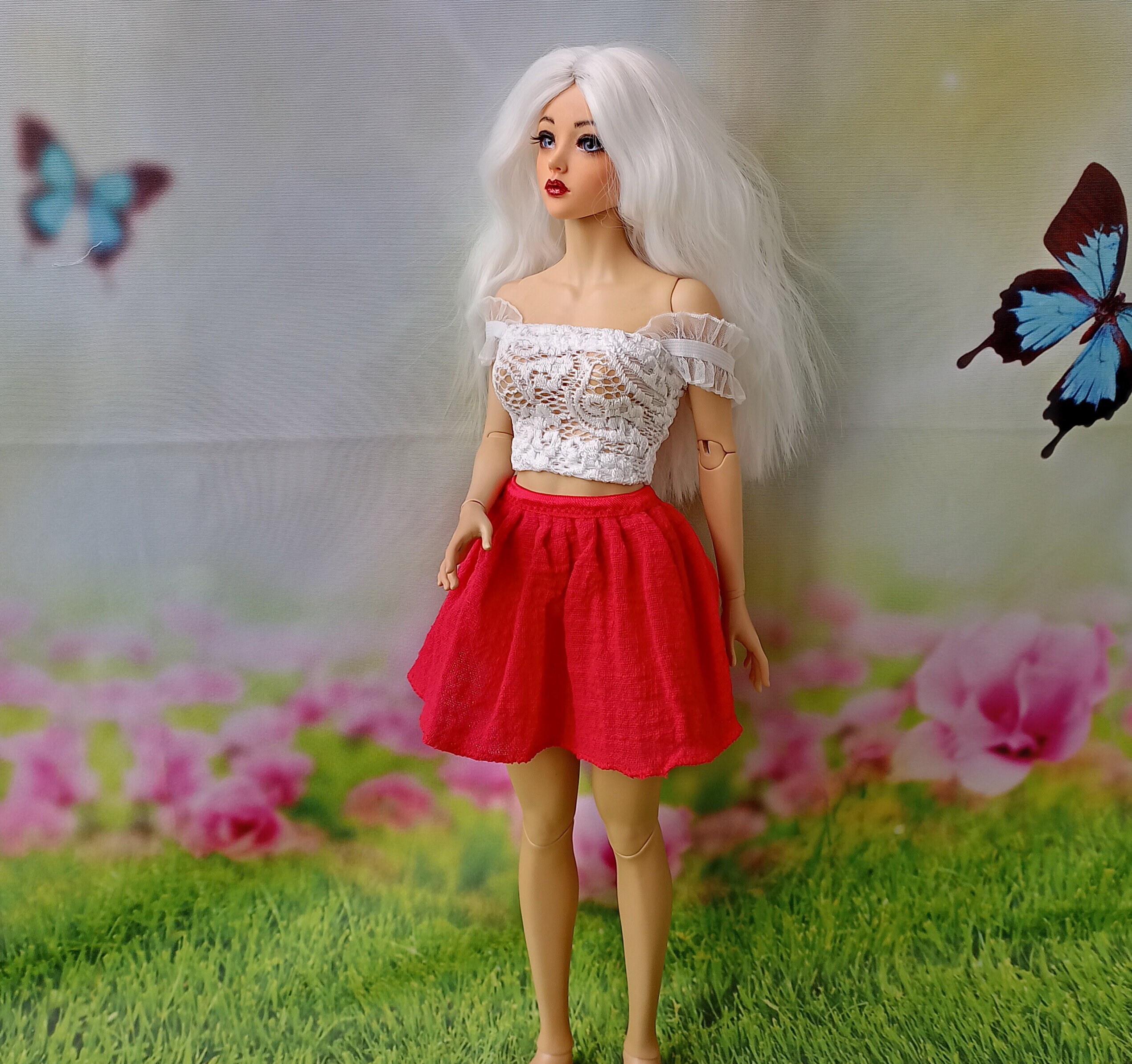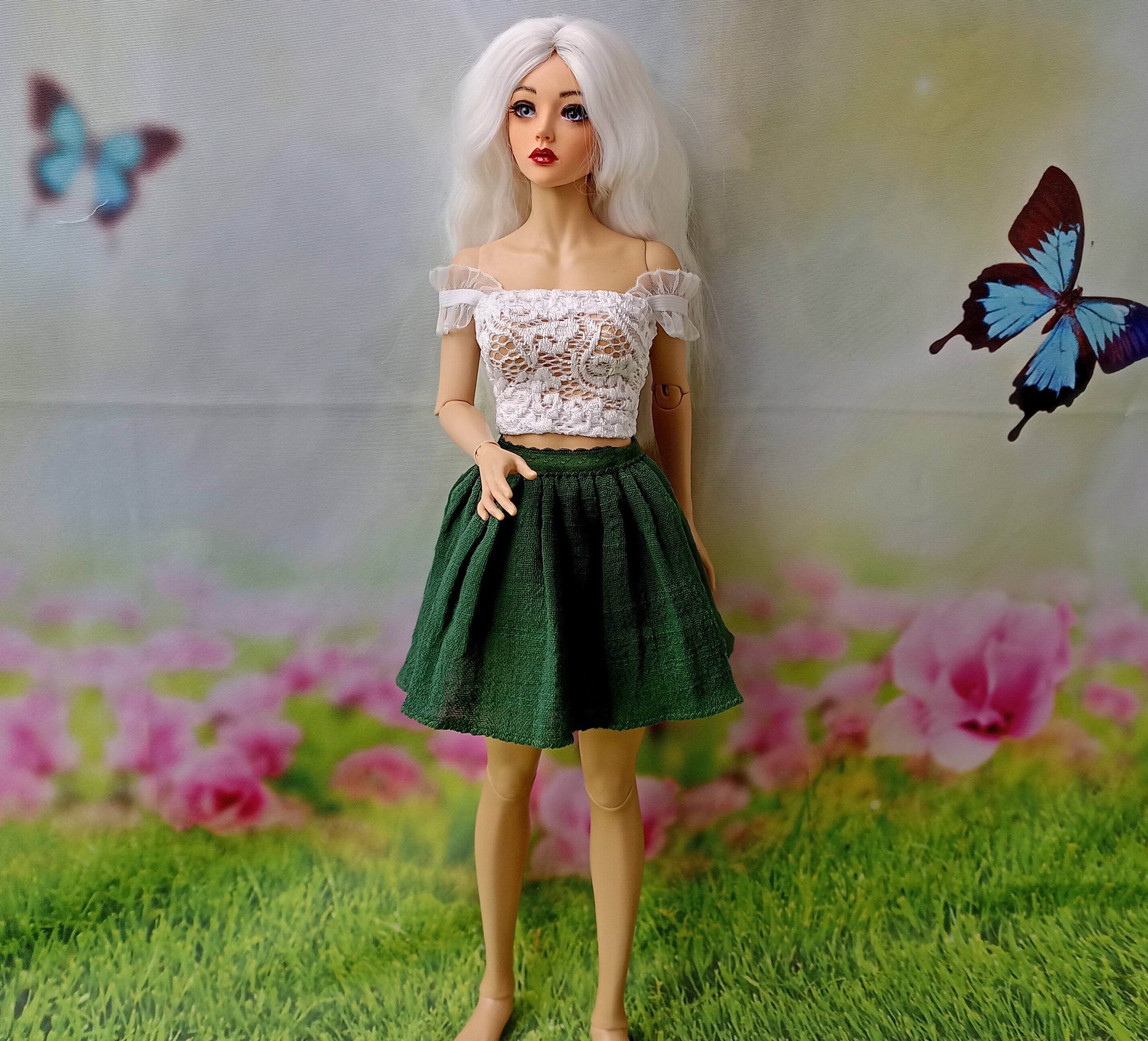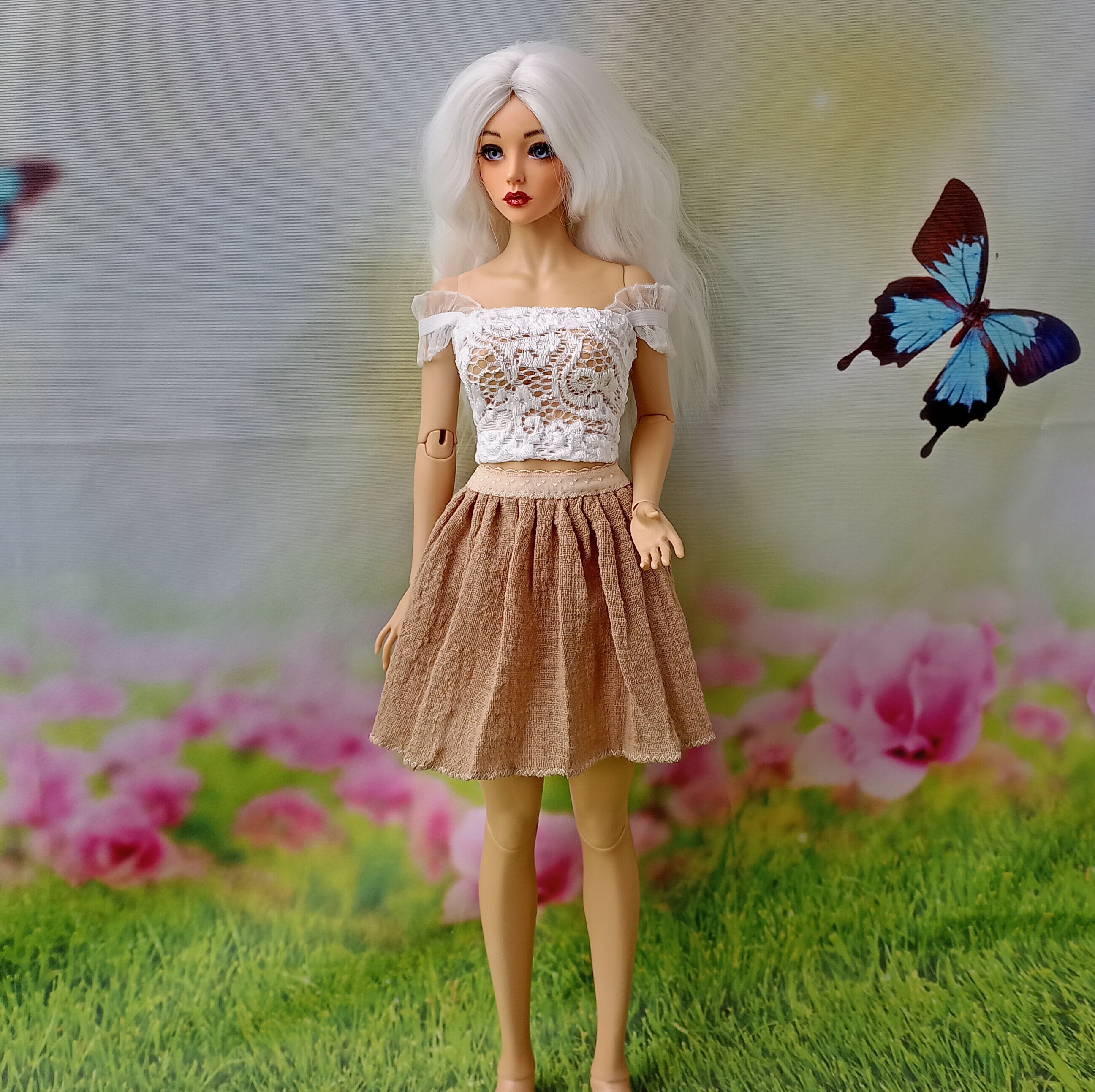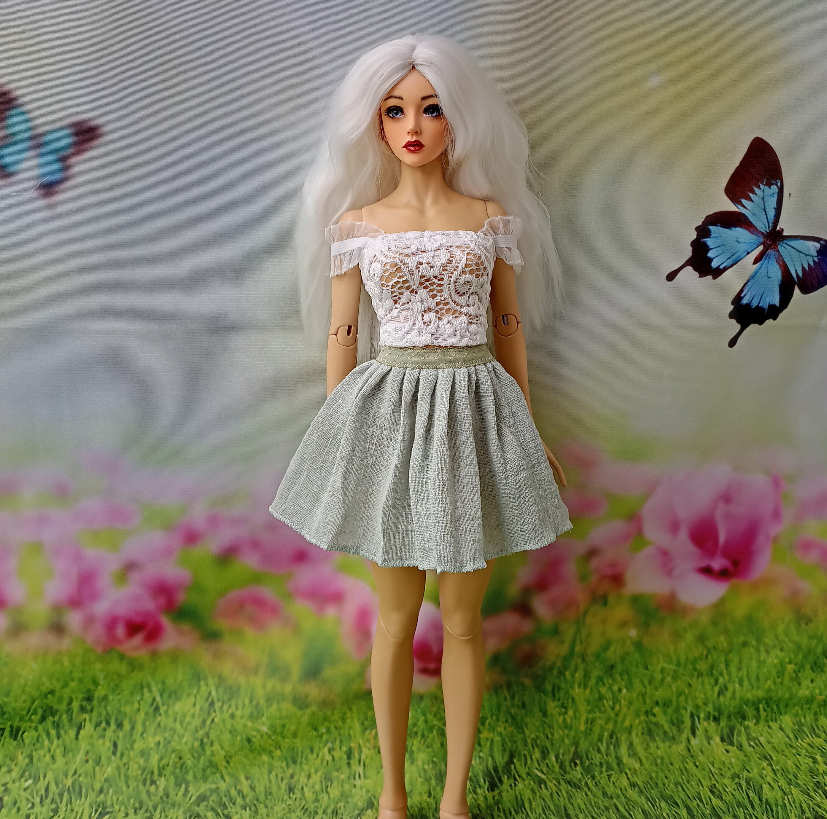 bjd 1/4 MSD Mini ruffled skirt of soft linen/cotton for 1/4 dolls 17”/45cm type ipl FID and similar in size.