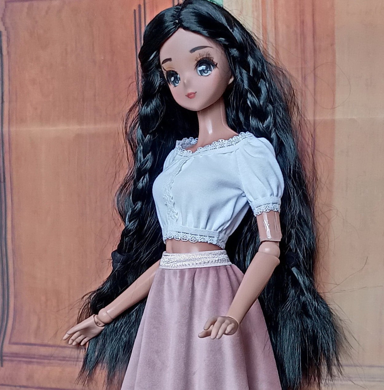 *bjd 1/3 SD Black wig for dolls type Smart doll and similar in size. Head circumference - 22-24cm/ ~ 9"
