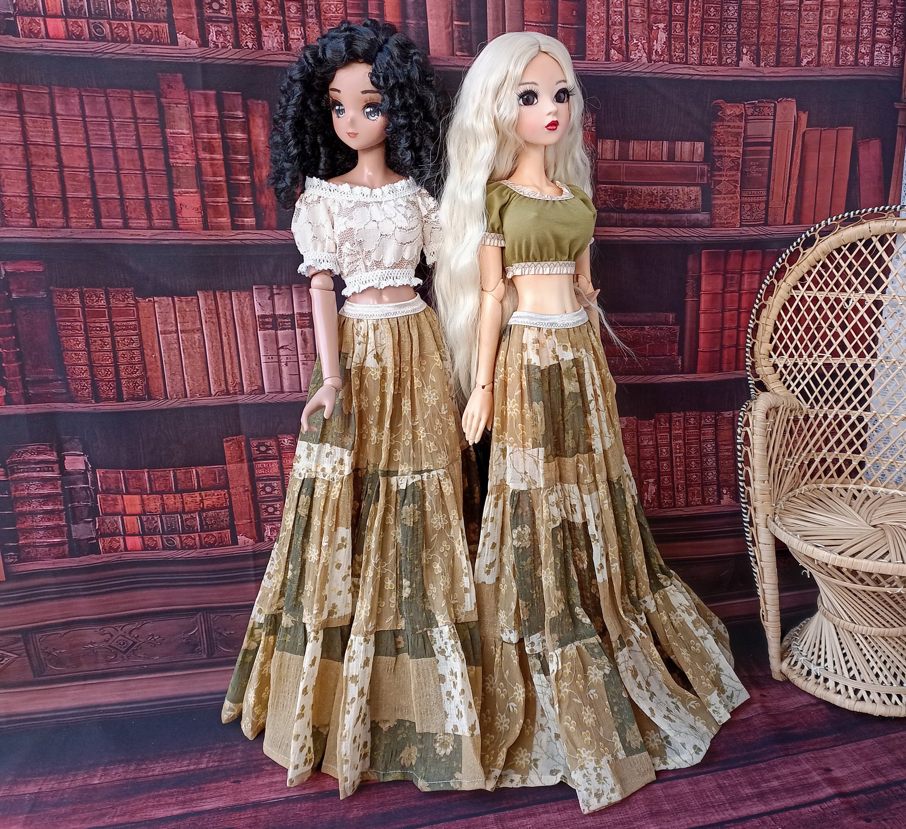 Smart doll Maxi wide bohemian wrinkled chiffon skirt for bjd 1/3 dolls type Smart doll and similar in size