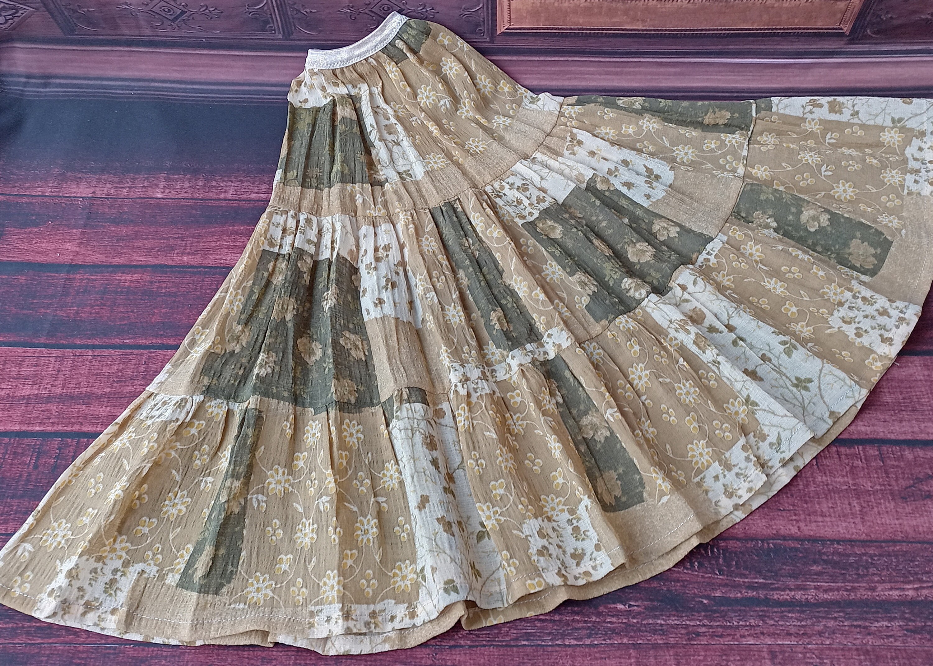 The skirt is made of high-quality crepe chiffon. The fabric is very pleasant to the touch. Mustard color