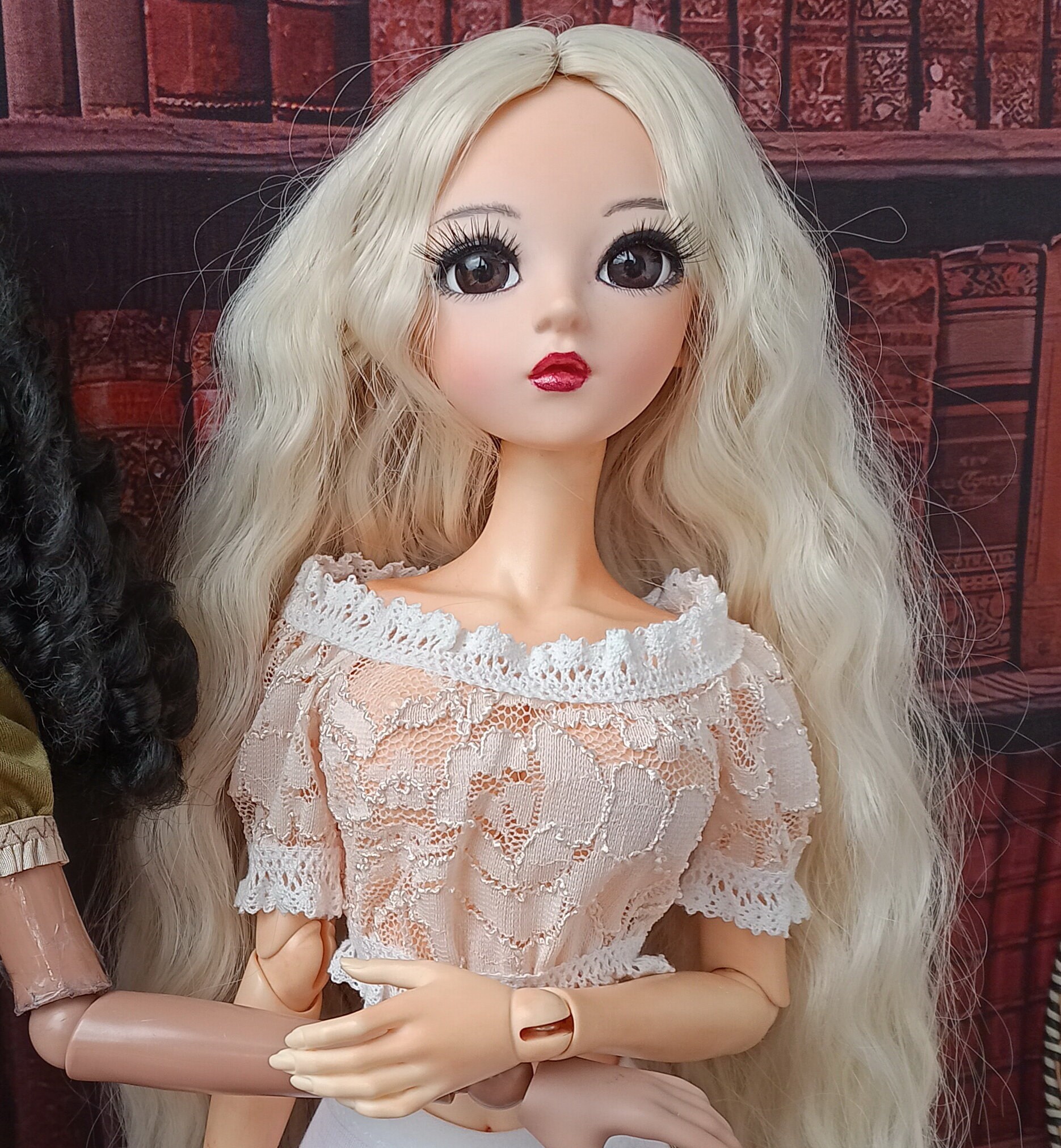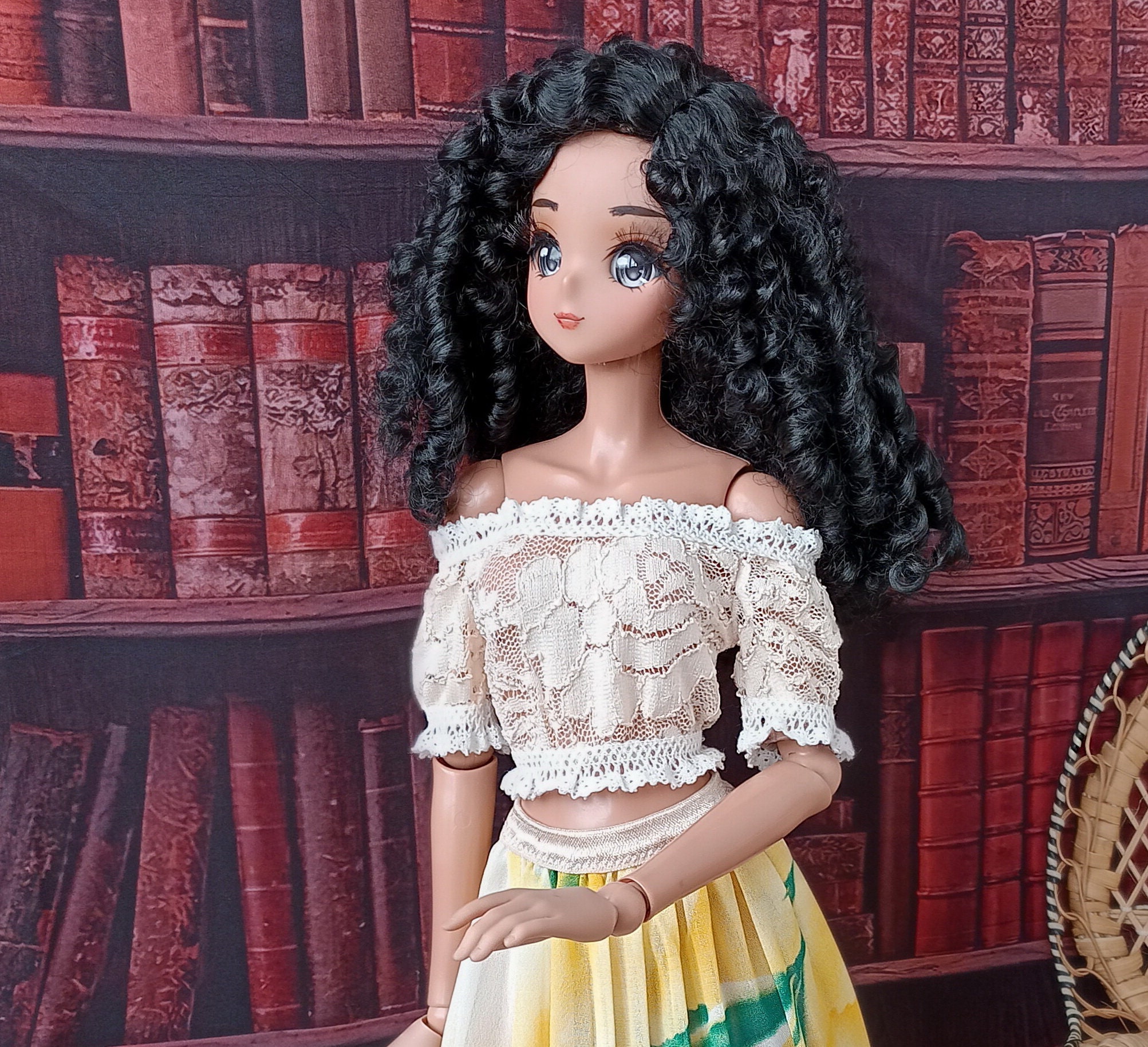 Smart doll Beige romantic crop top shirt of elastic lace for dolls 24” /60cm type Smart doll and similar in size