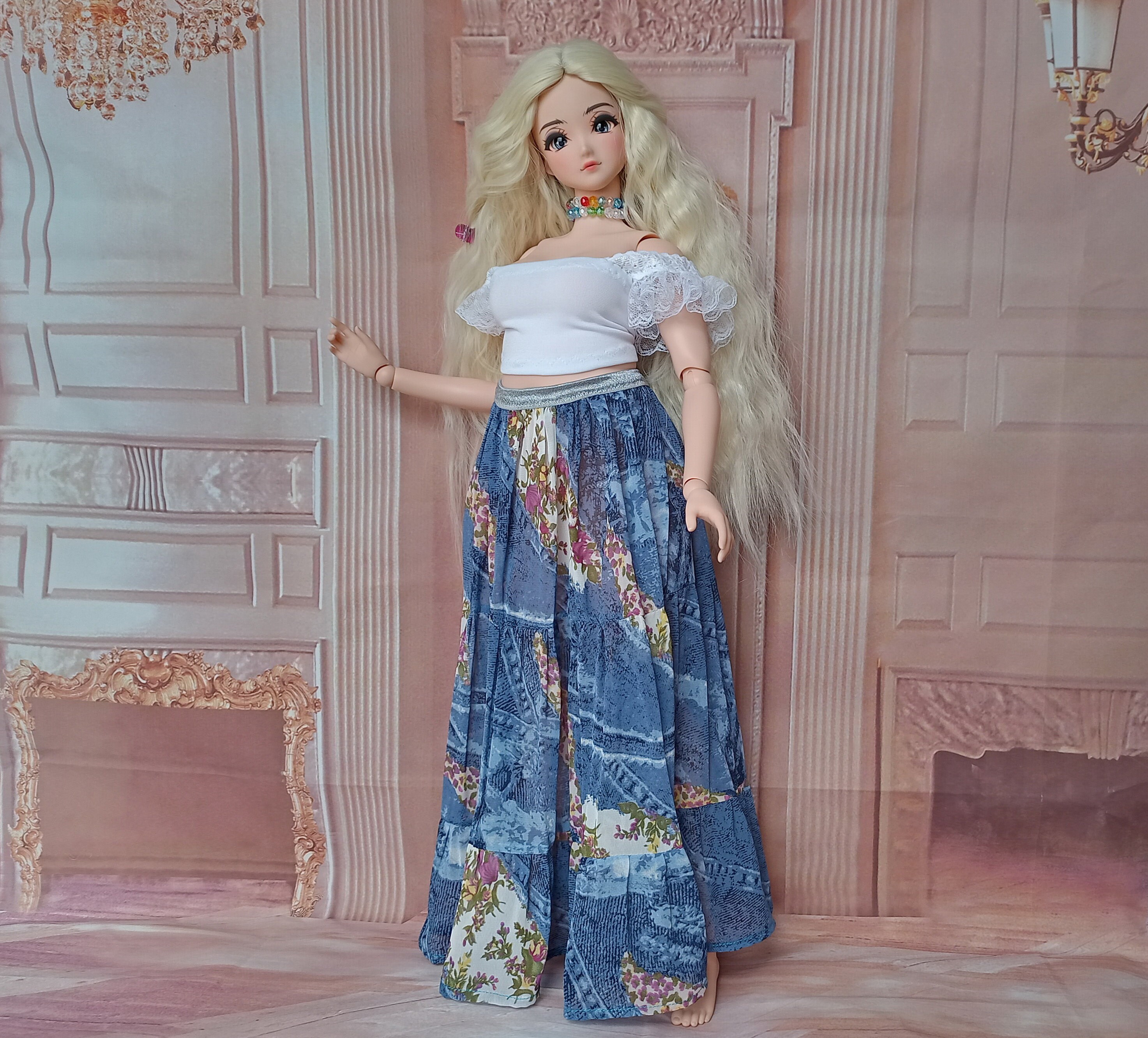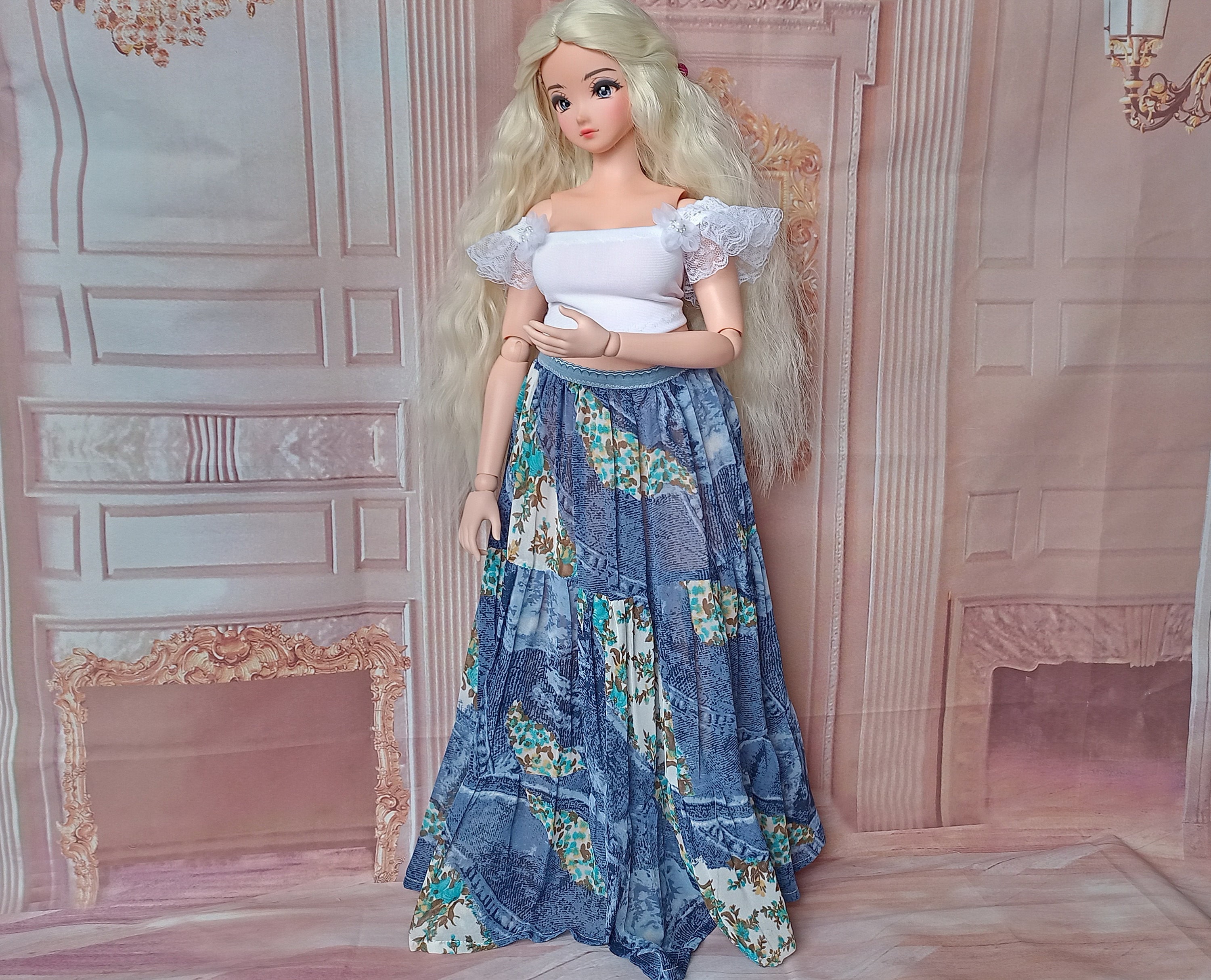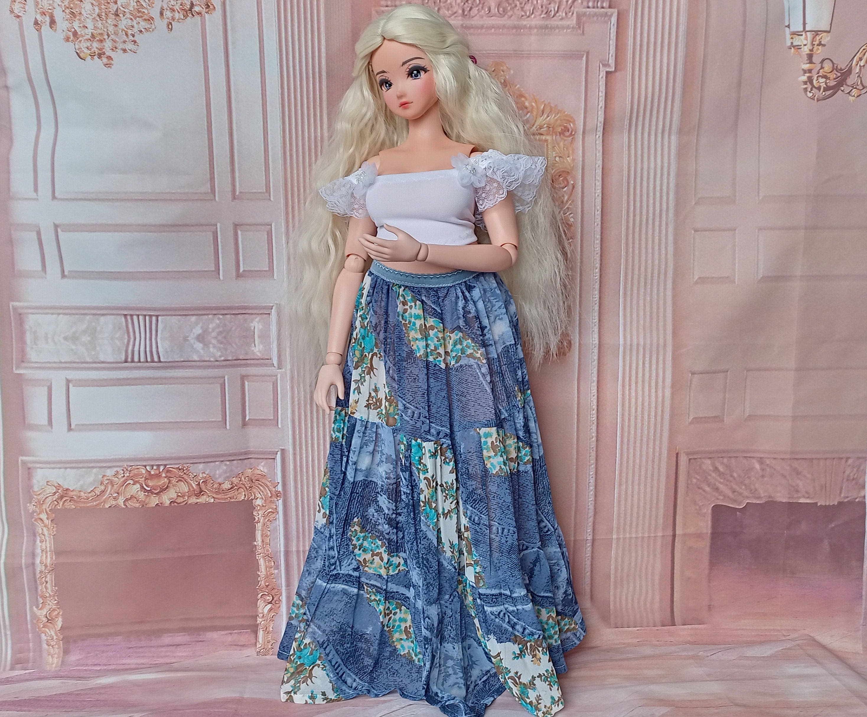 *Pear Smart doll clothes Maxi wide bohemian skirt for dolls 24”/60cm type Pear Smart doll and similar in size