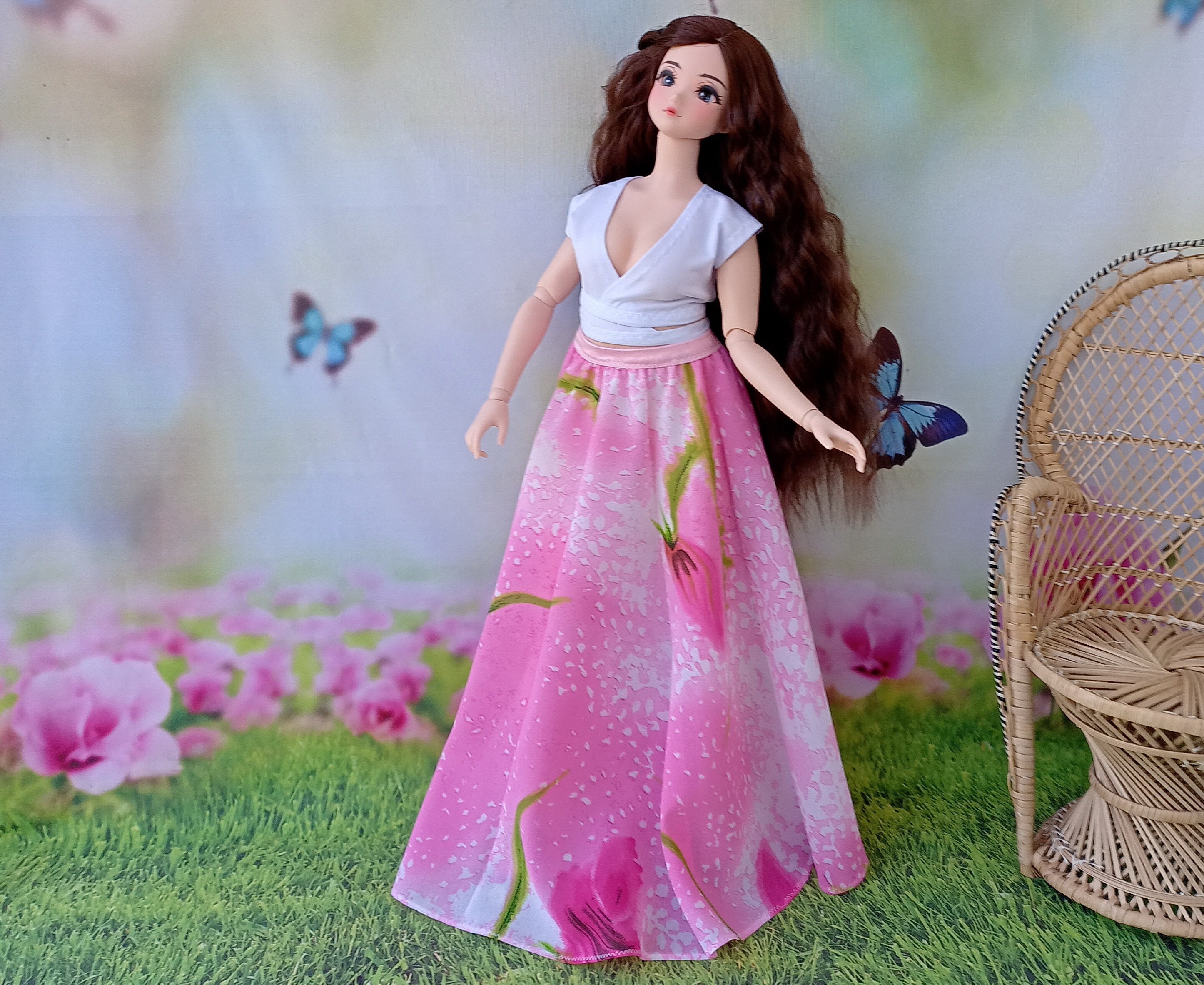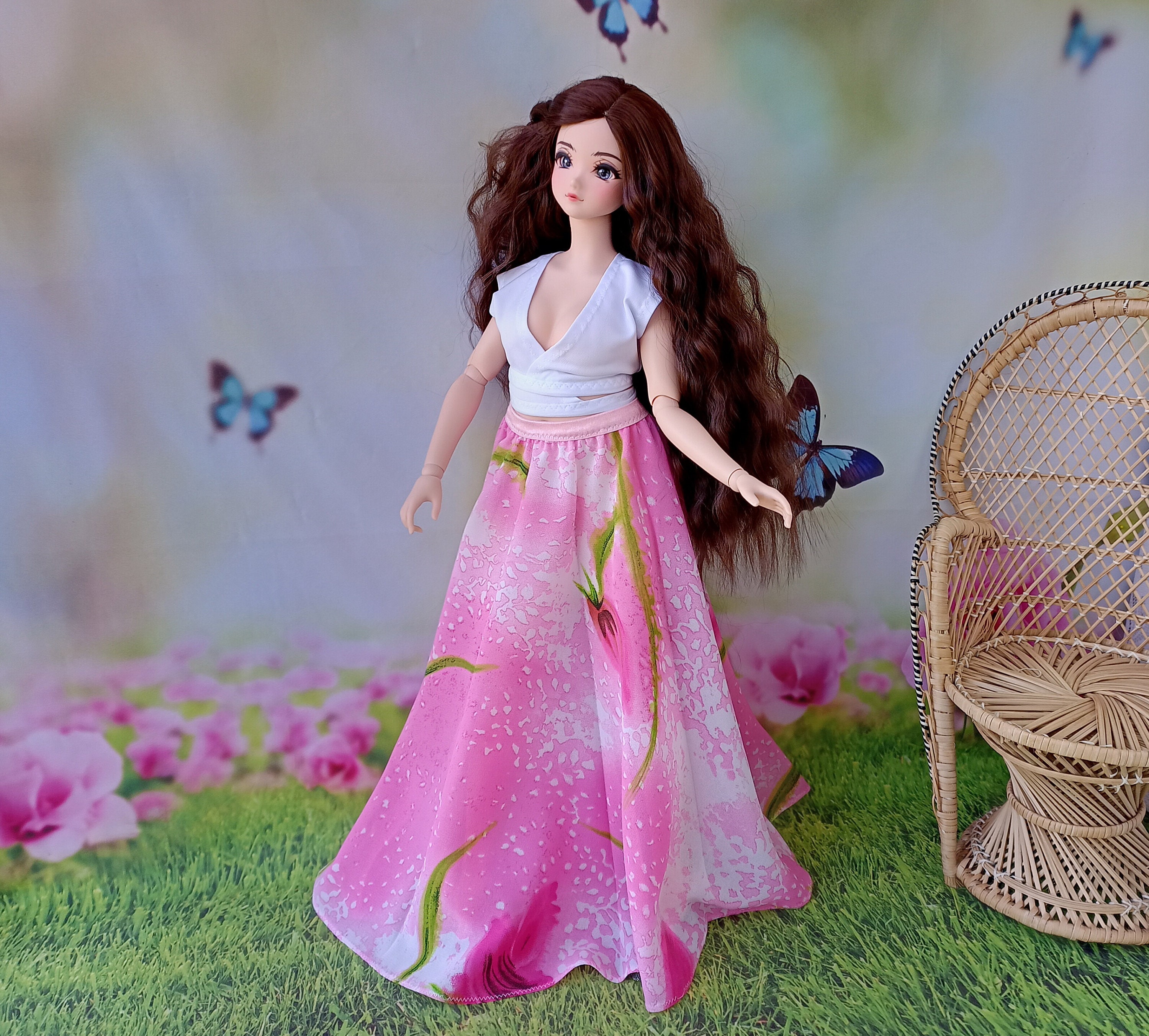 *Pear Smart doll clothes. Maxi pink chiffon skirt for dolls 24”/60cm type Pear Smart doll and similar in size
