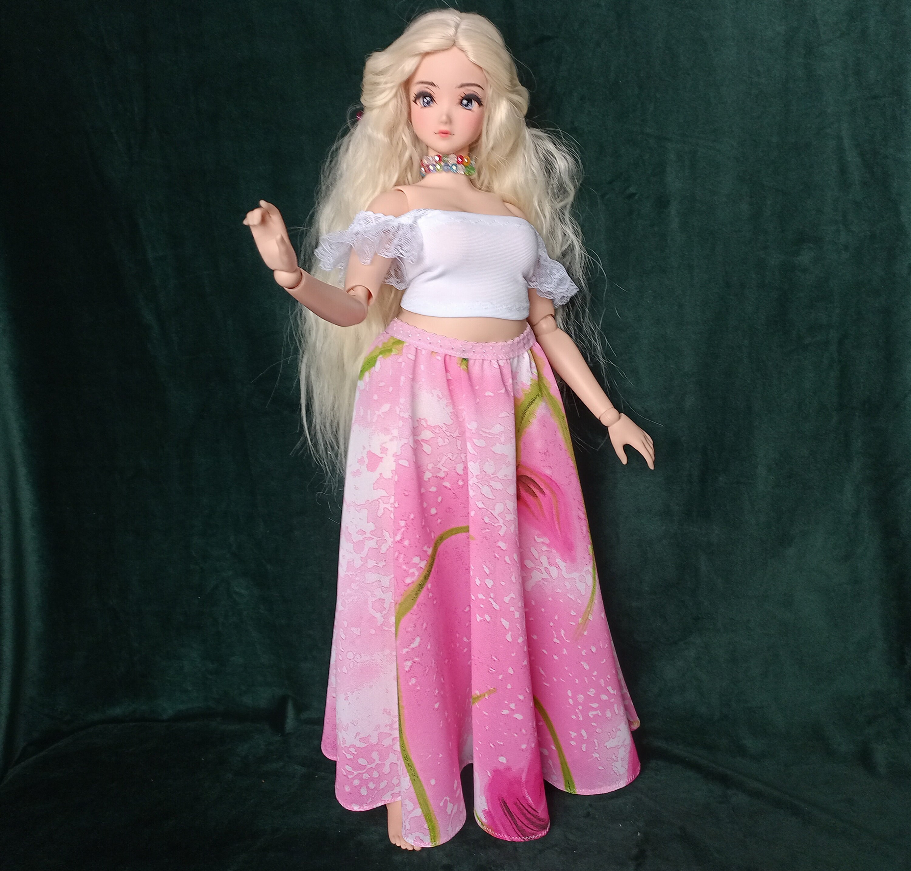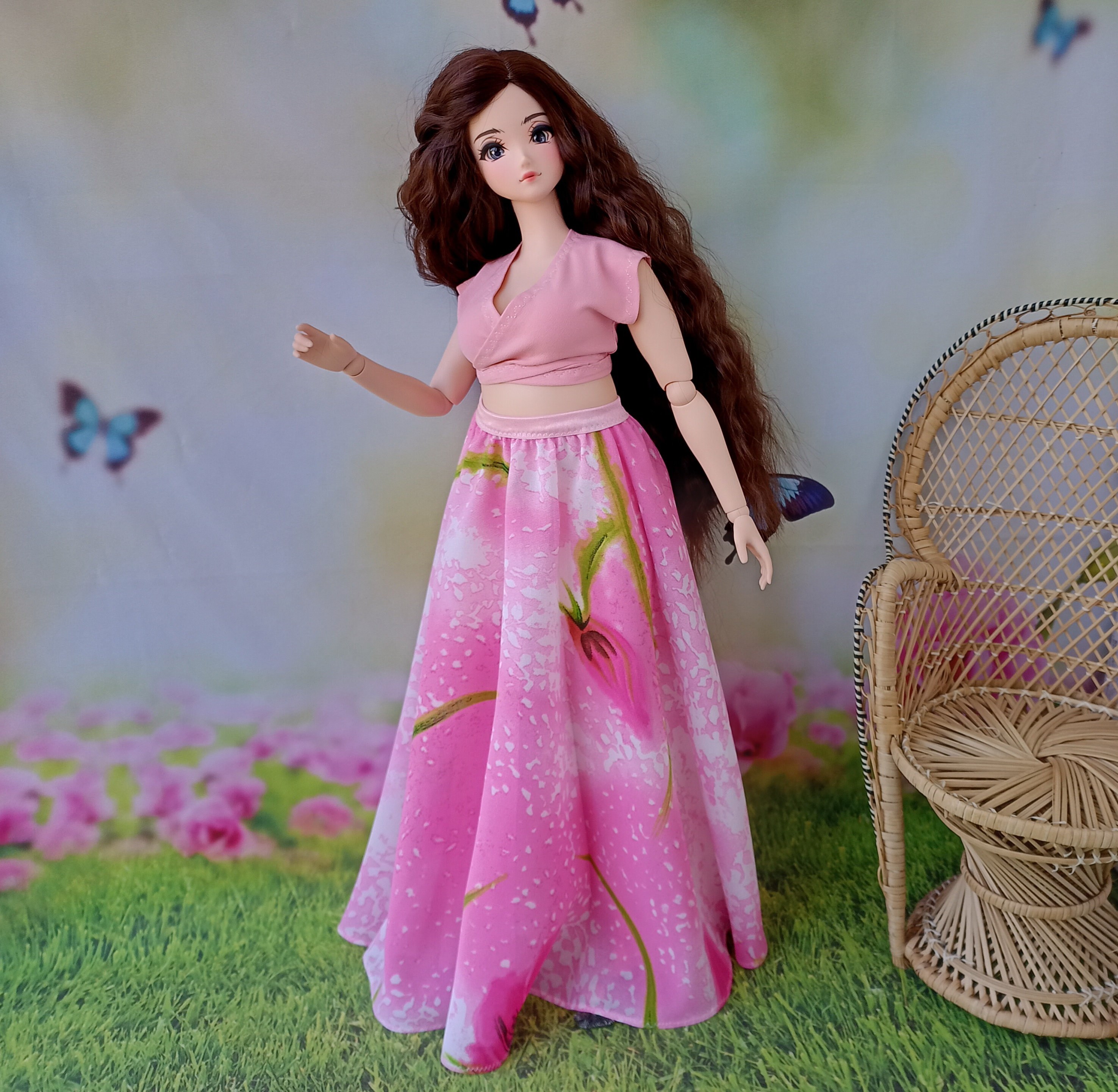 PEAR sd Maxi 1/2 circle skirt of pink chiffon for dolls 24”/60cm type Pear Smart doll and similar in size