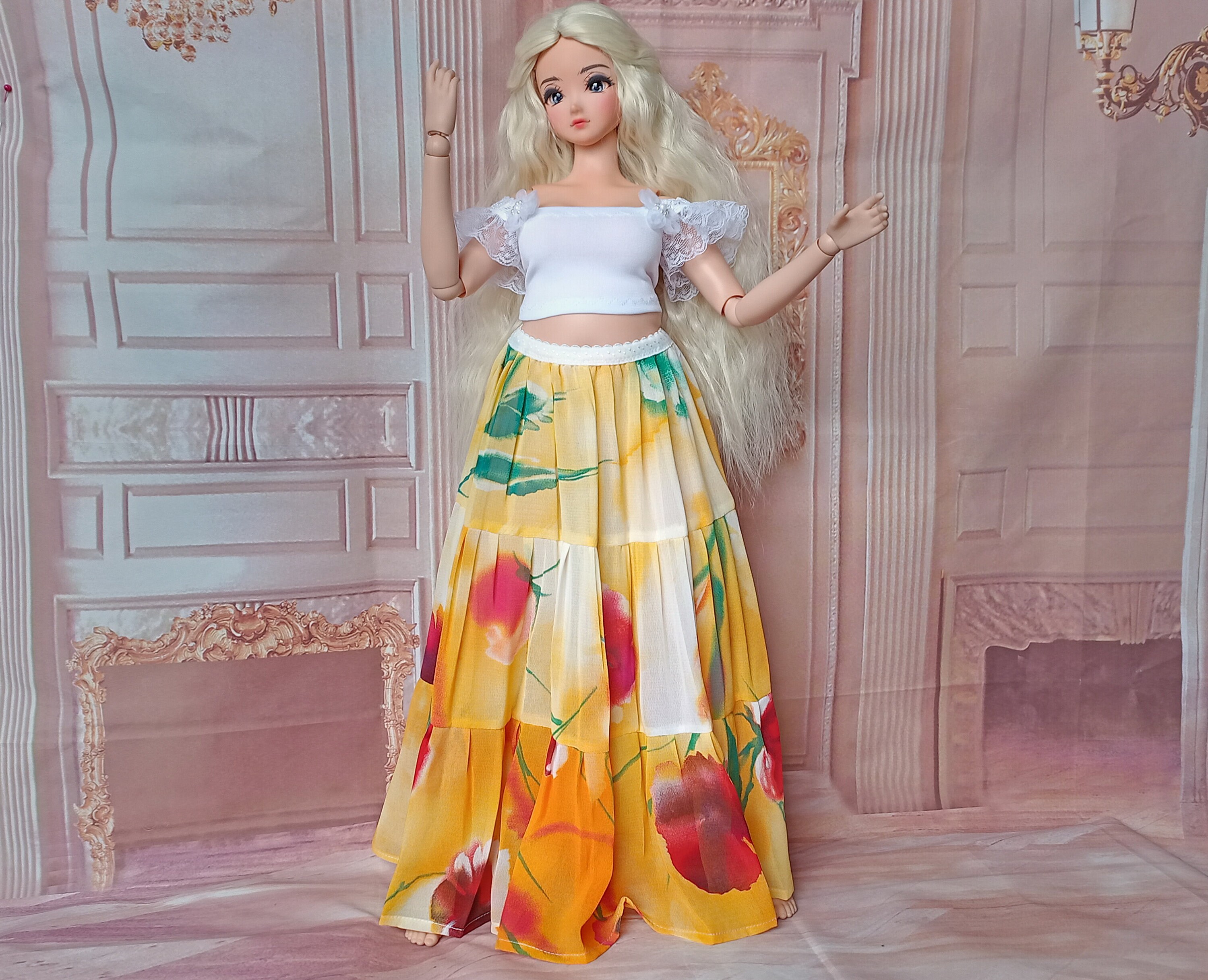 Pear Sd long Boho georgette skirt for dolls type Pear Smart doll and dolls similar in size