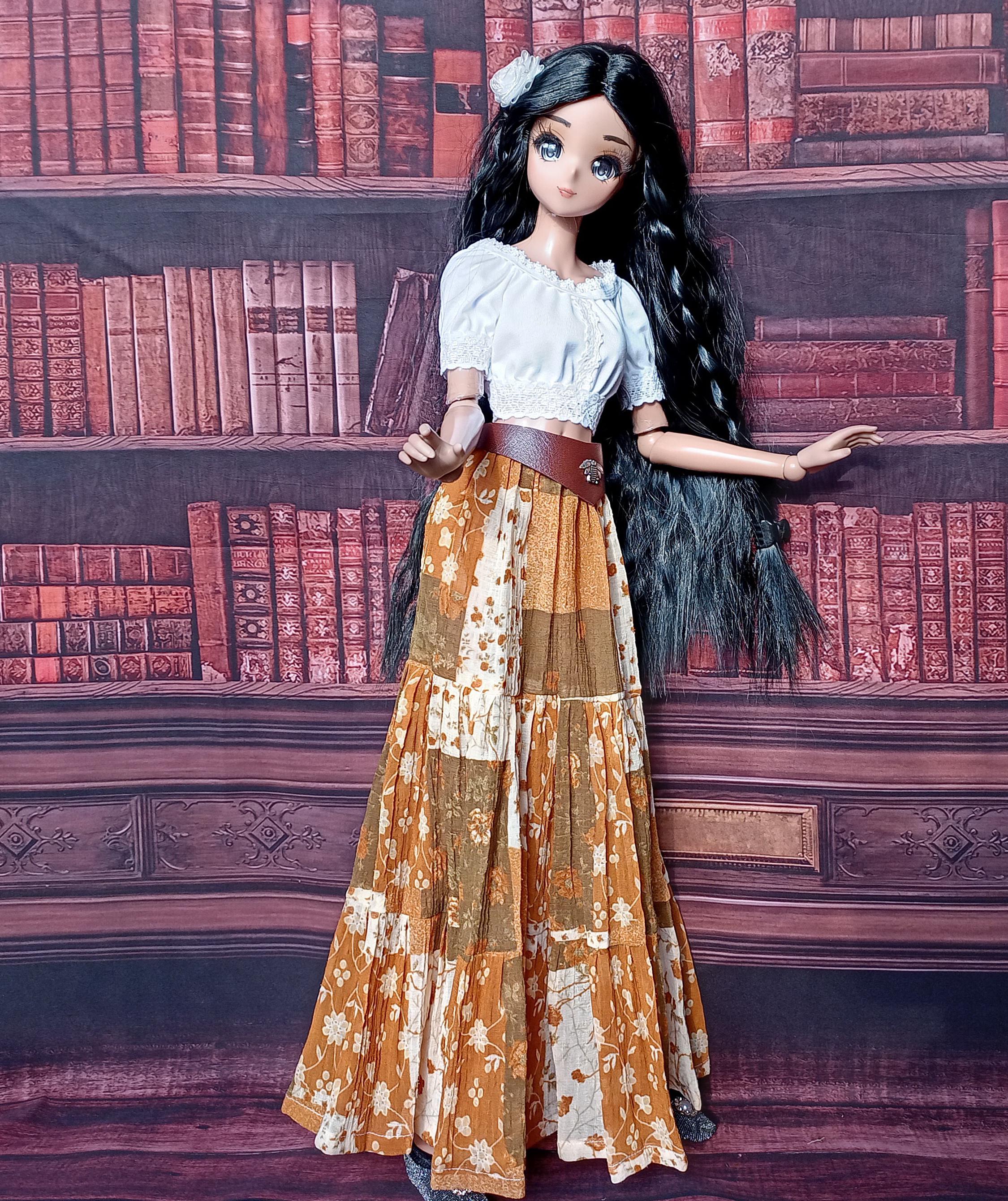 *bjd 1/3 SD clothes caramel color bohemian long skirt for dolls 24” /60cm type Smart doll and similar in size Dollfiedream Feeple60
