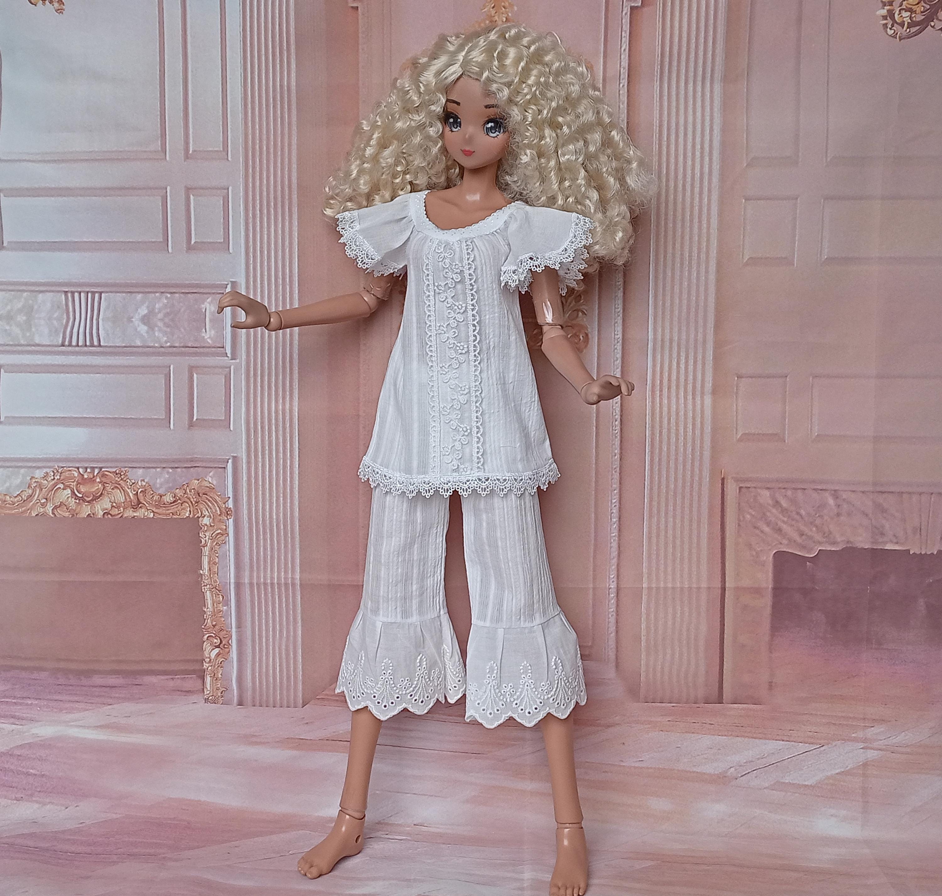 *bjd 1/3 SD White Muslin Pajamas "Dream of an Angel" Nightgown nightdress night-robe nightie sleepwear for dolls type Smart doll and similar in size.