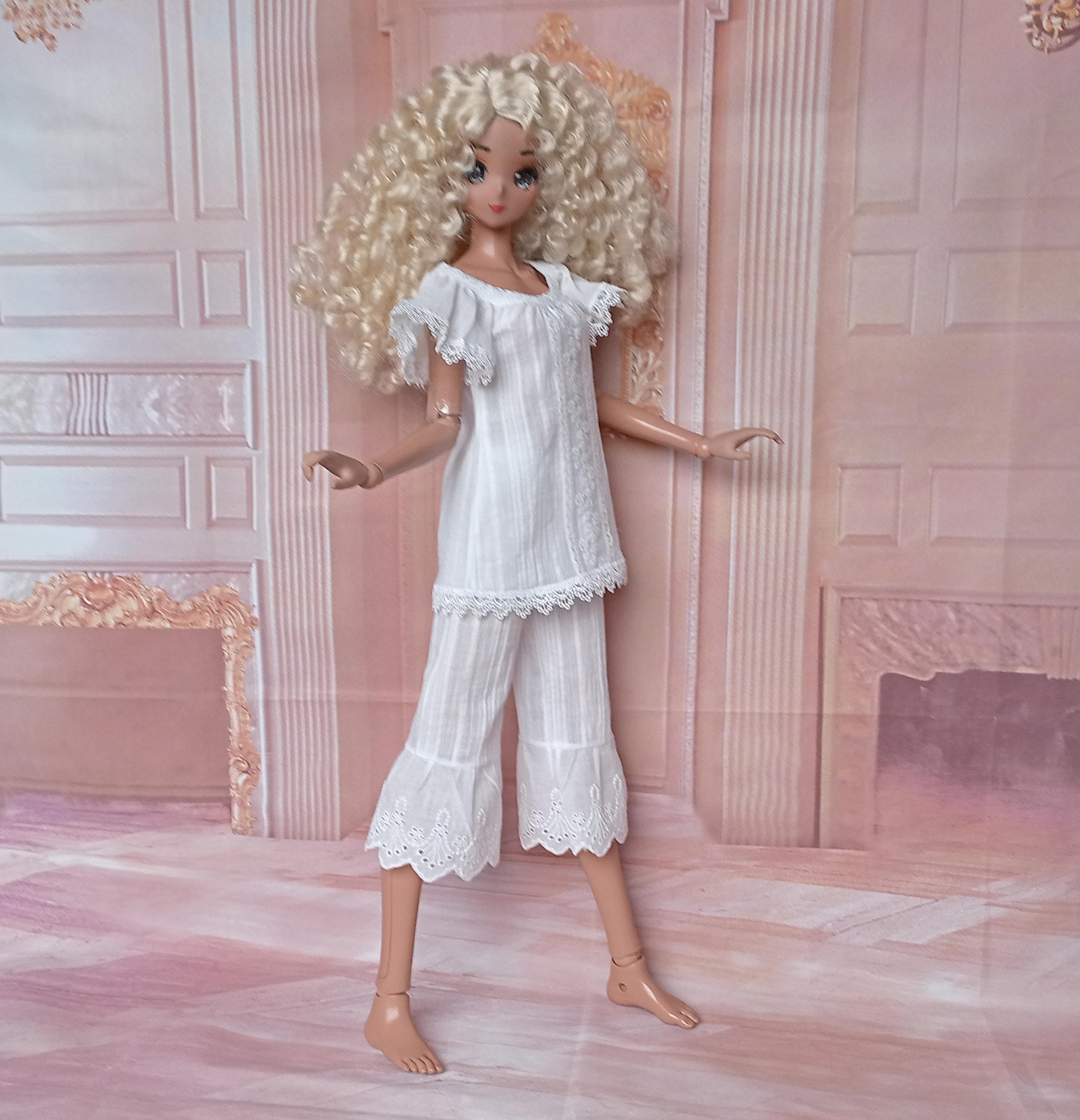 Smart doll White Muslin Pajamas Nightgown nightdress for dolls type Smart doll and similar in size