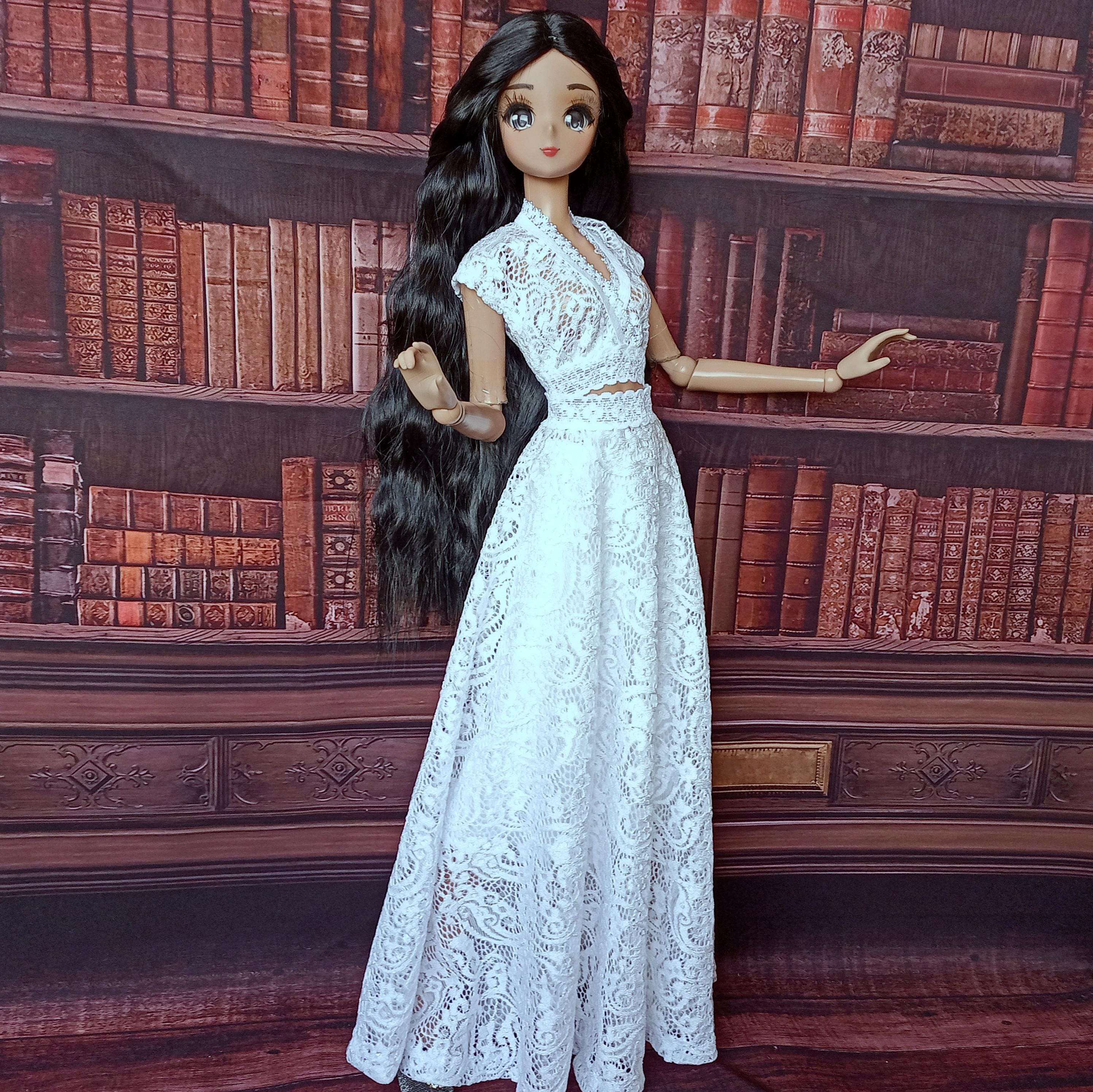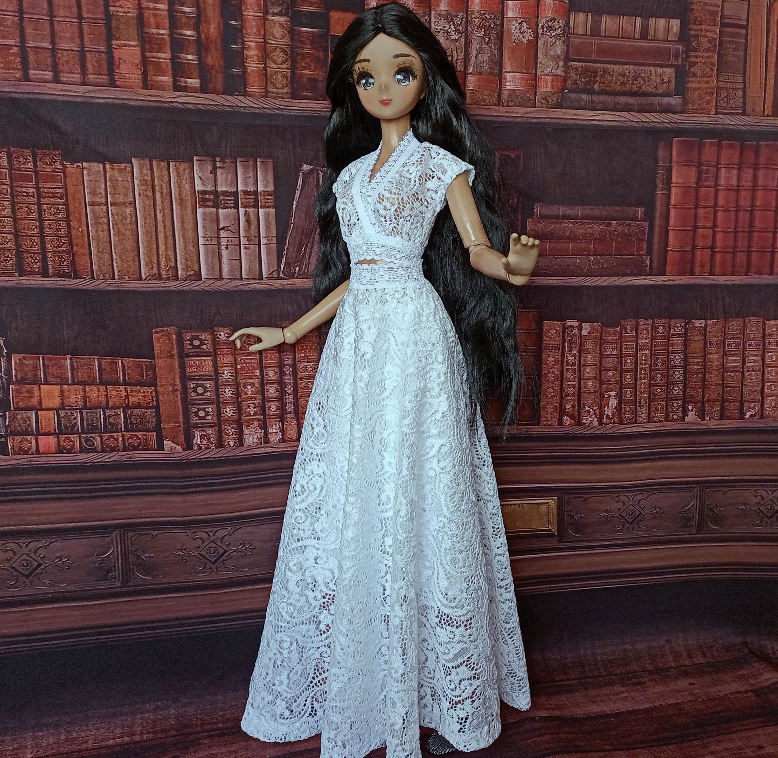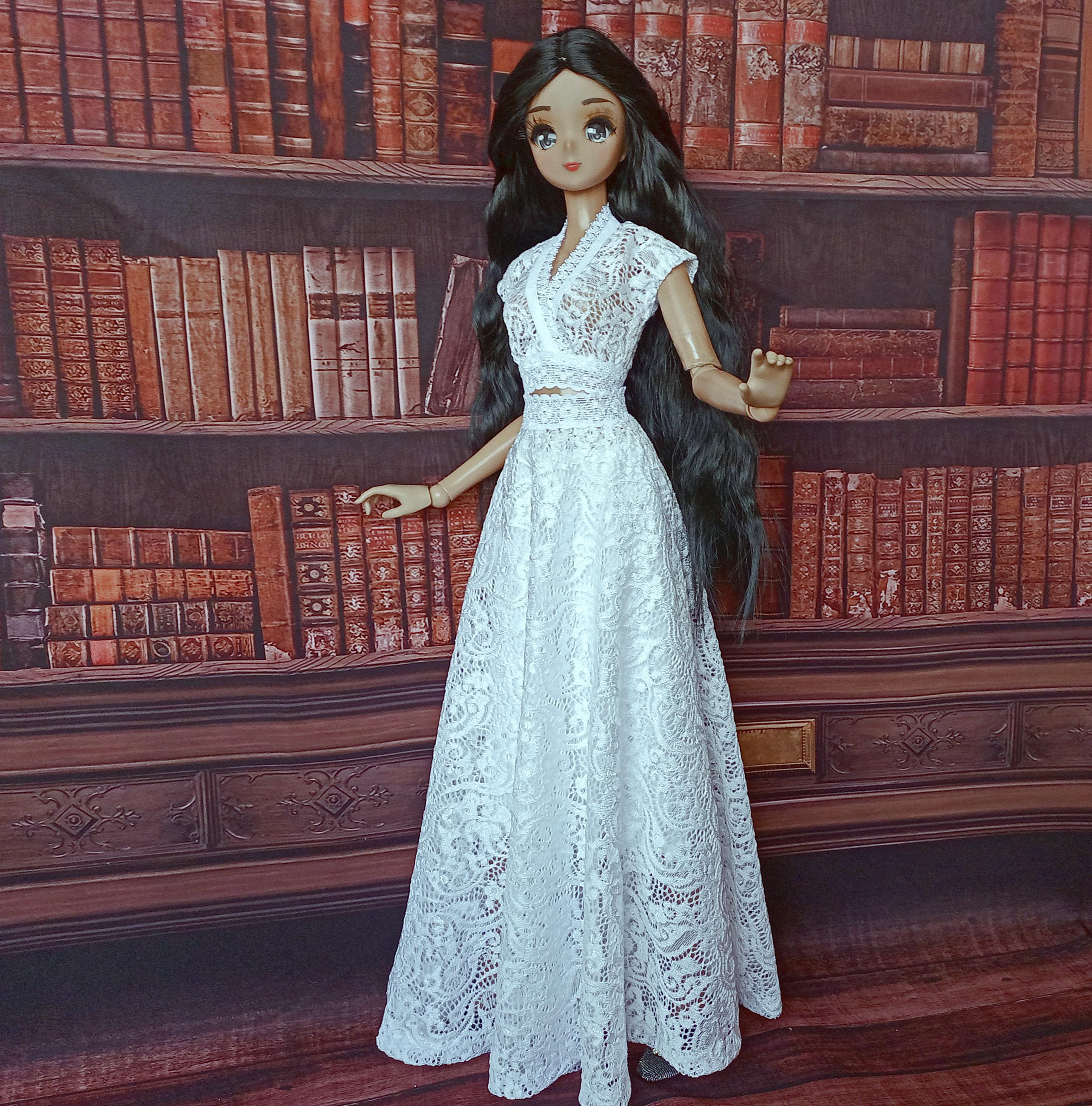 Smart doll Snow White long dress set of long 1/2 circle skirt and crop top of elastic guipure