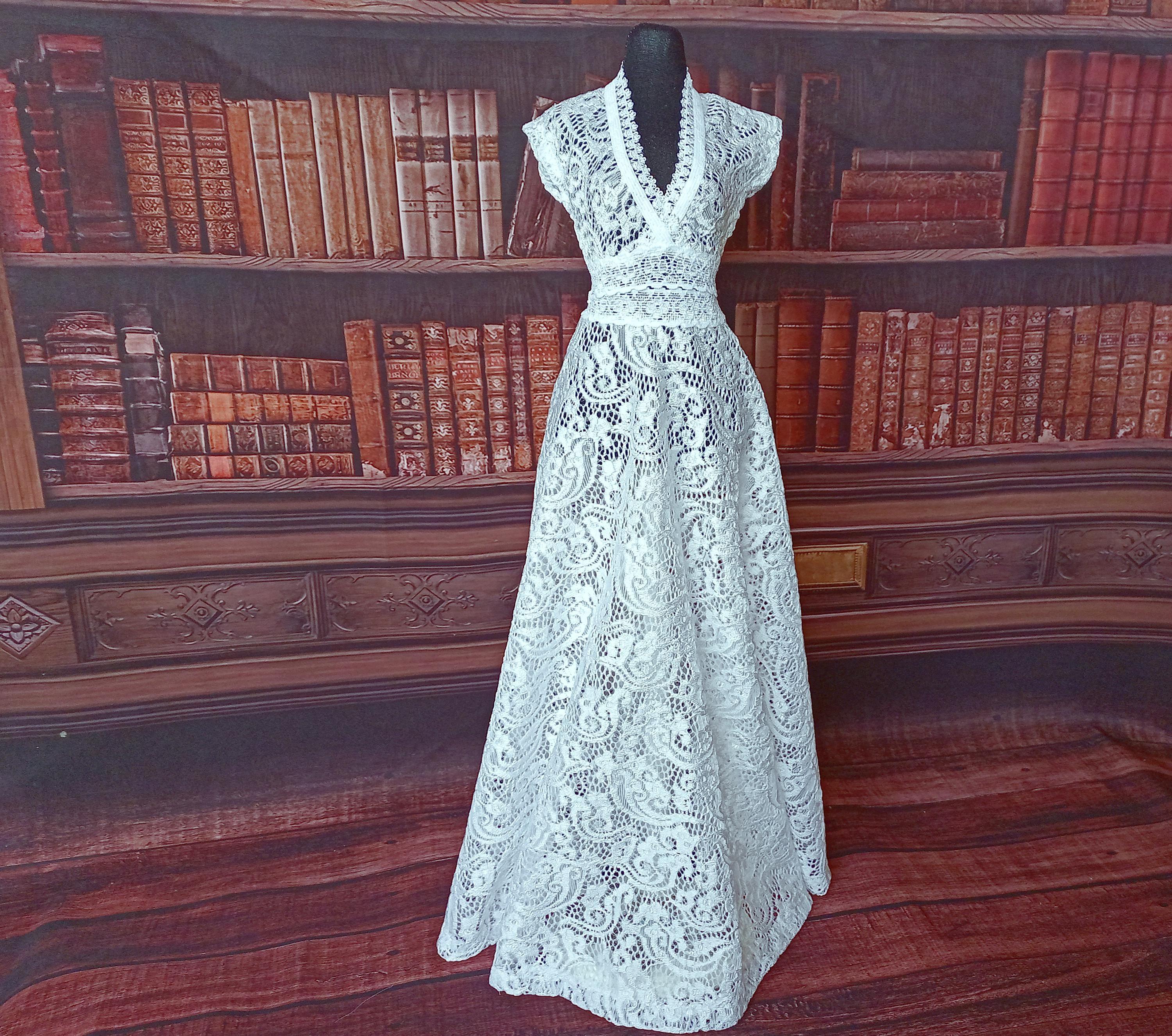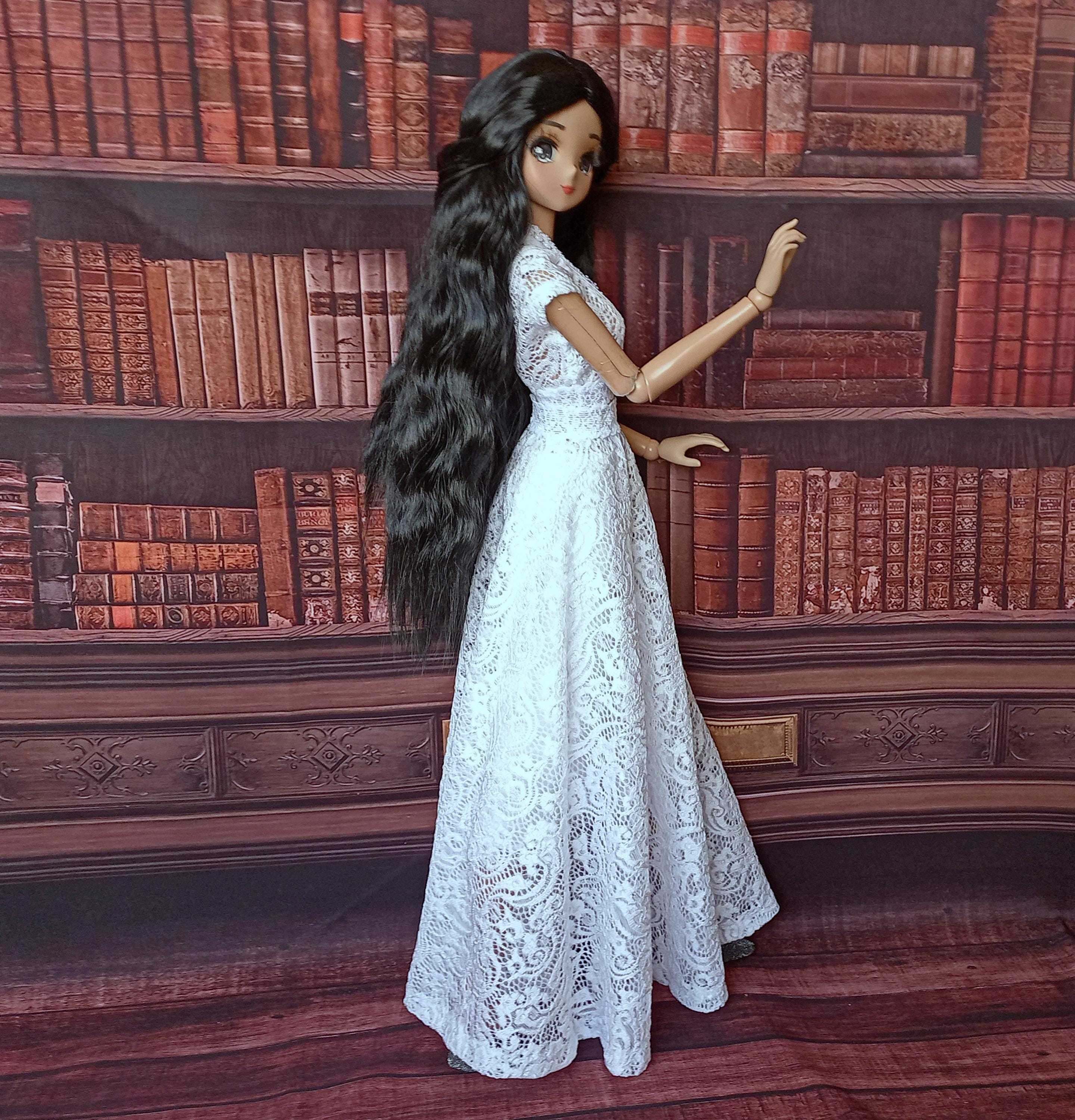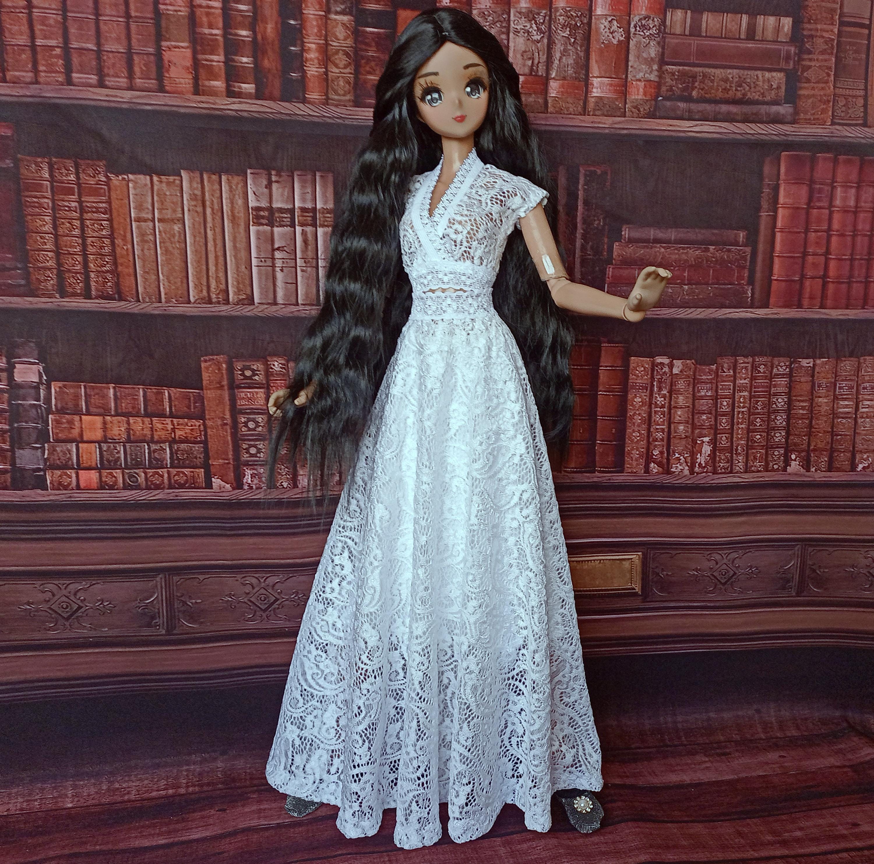 Smart doll Snow White long dress set of long 1/2 circle skirt and crop top of elastic guipure