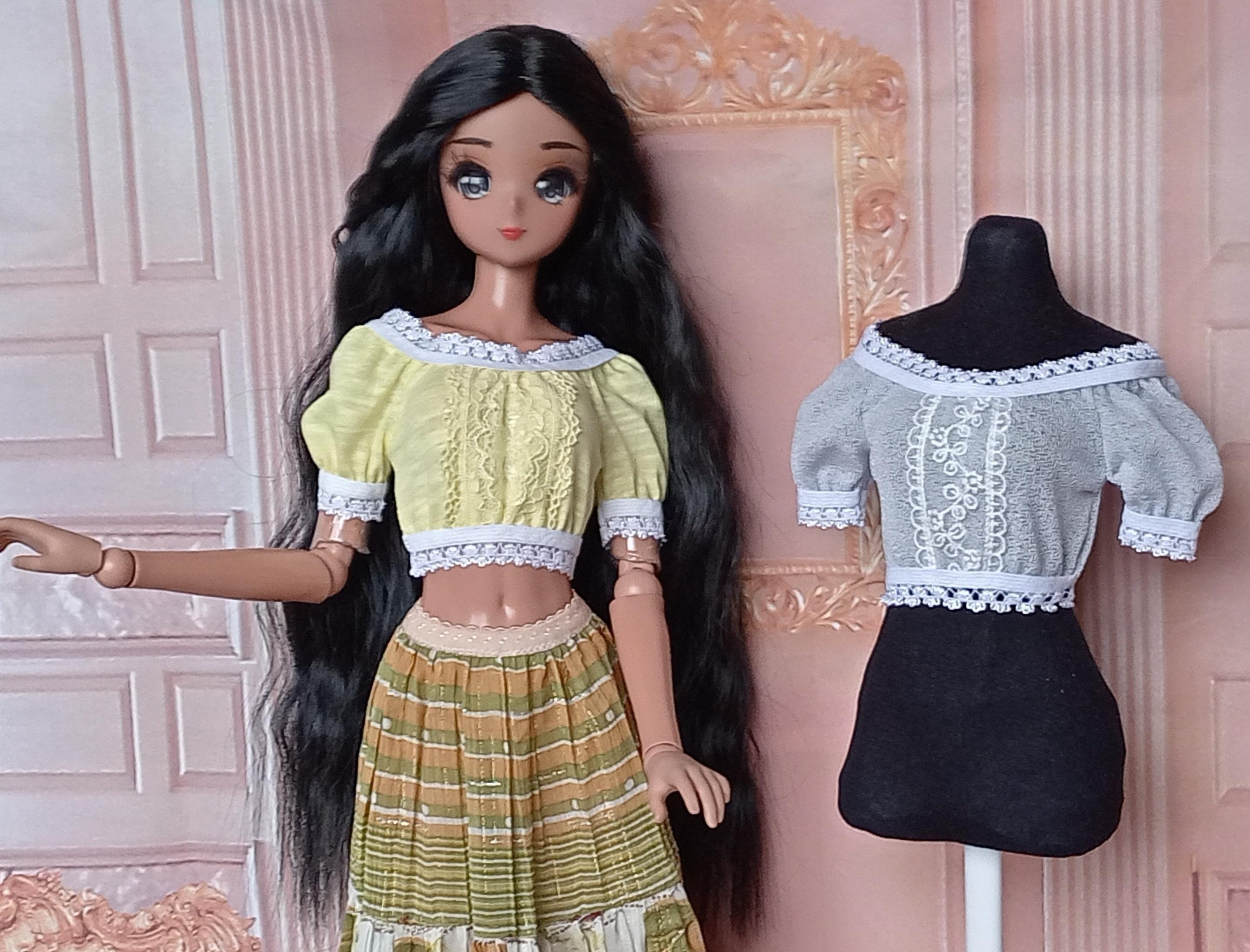 The top is just like pictured. It fits my doll perfectly and is a very bright, pretty yellow. Thank you for your beautiful work <3 Everything shipped promptly and arrived safely. Good shipping time to the USA.