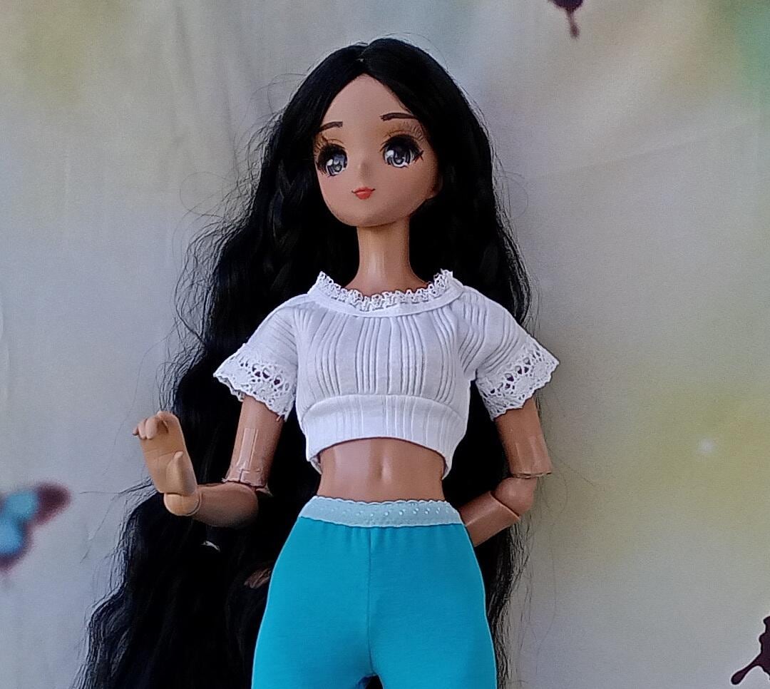 Smart doll White trendy crop top shirt for dolls 24” /60cm type Smart doll and similar in size