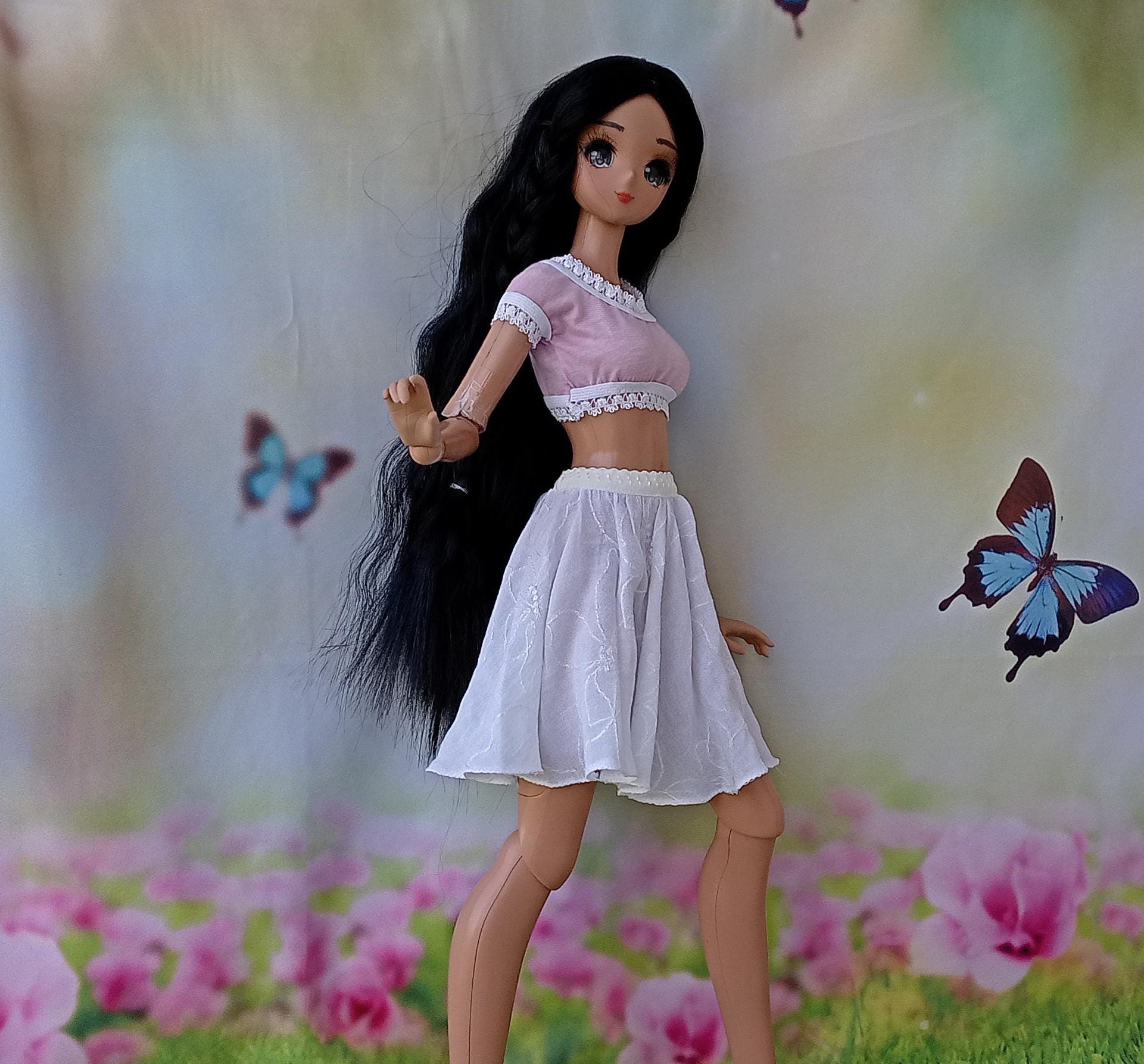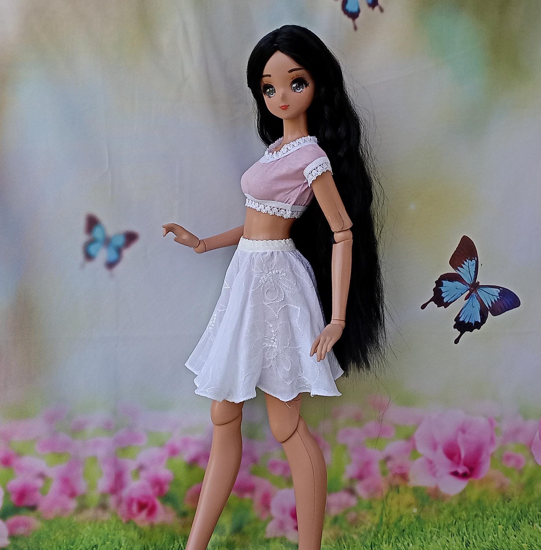 Smart doll White silk/viscose fulll circle skirt for dolls 24”/60cm type standard Smart doll and similar in size Dollfie dream Feeple 60