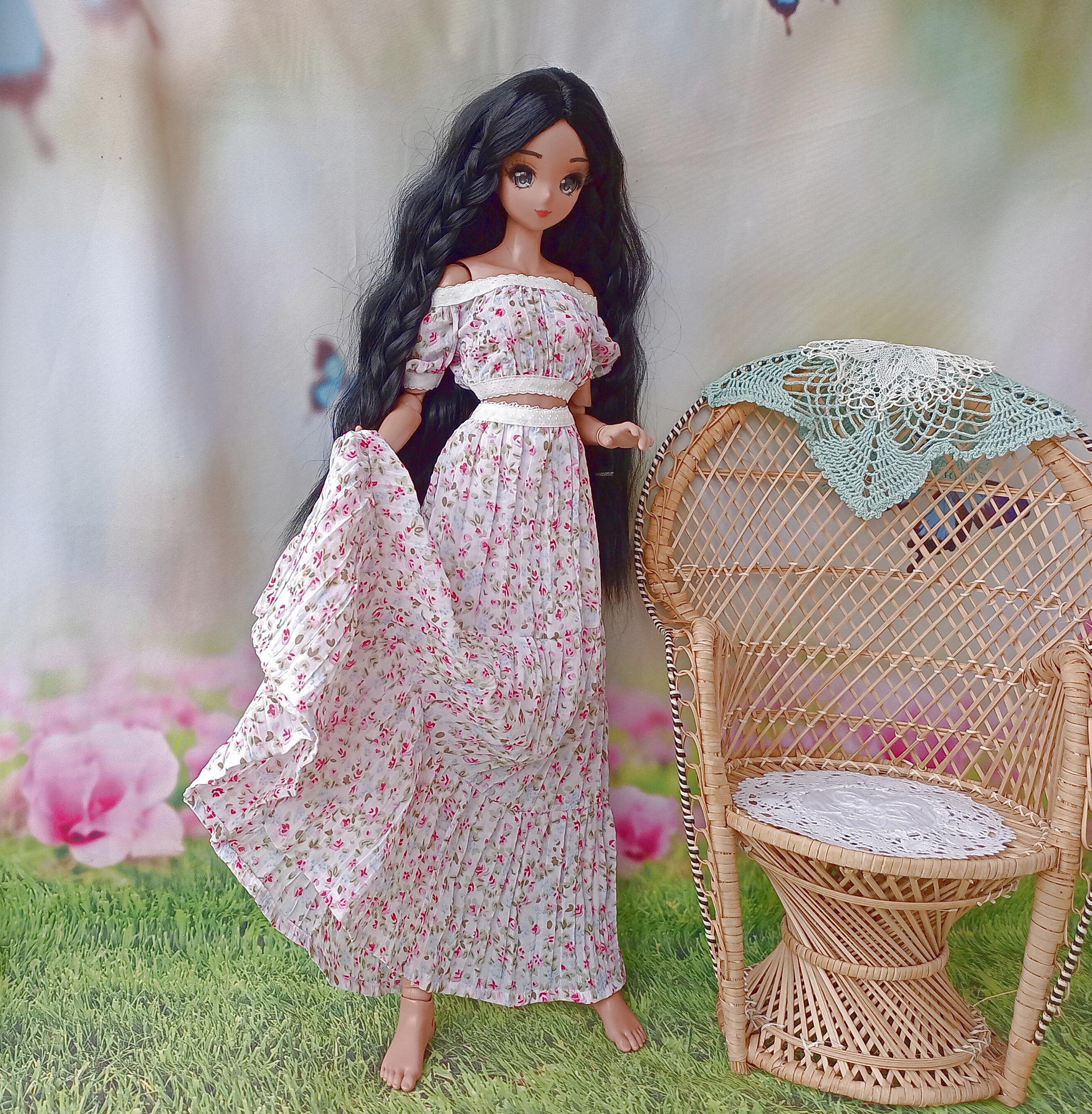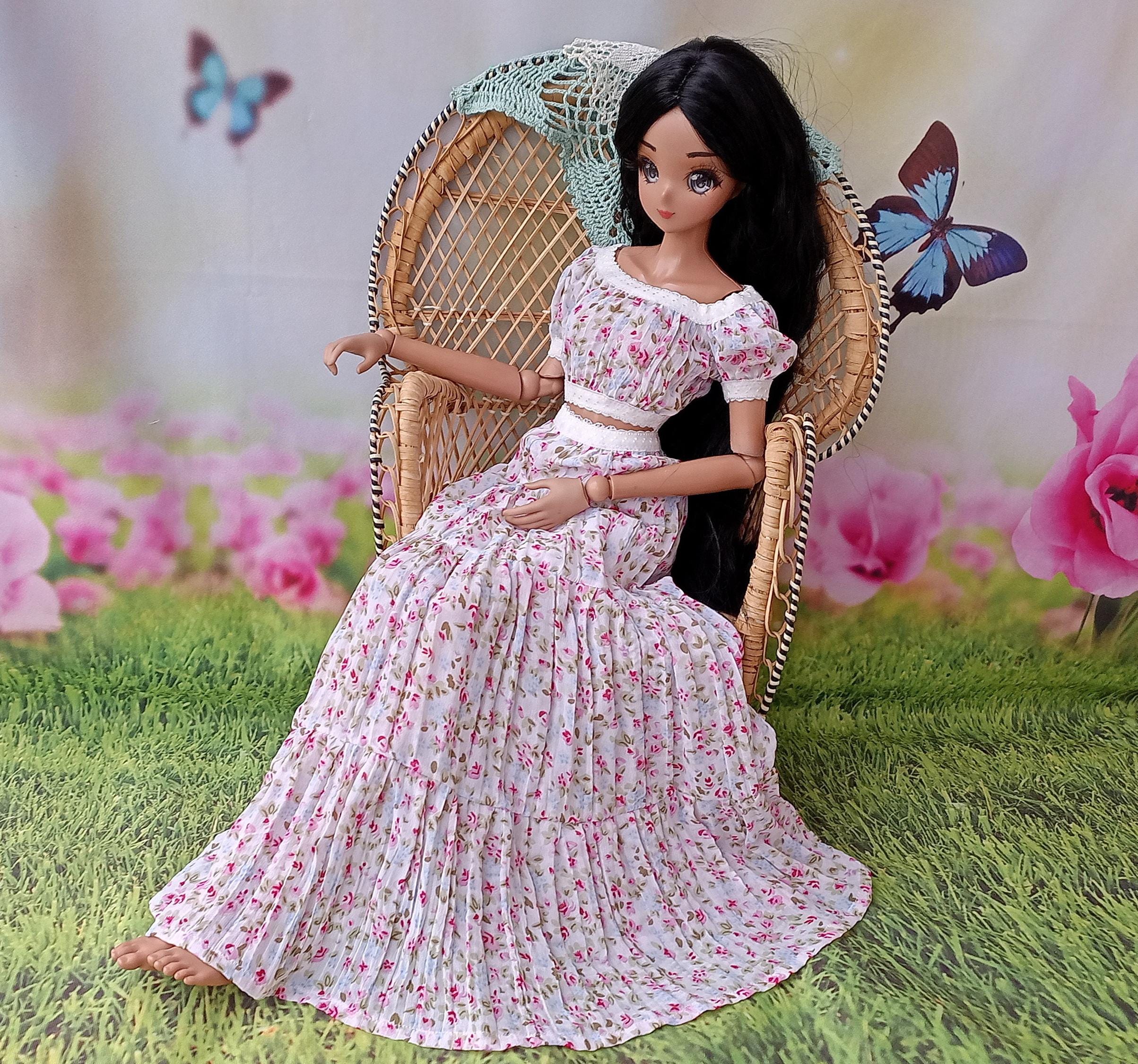 *Smart doll Long summer dress set made of floral crinkled chiffon for Smart doll 24”/ 60cm and similar in size.