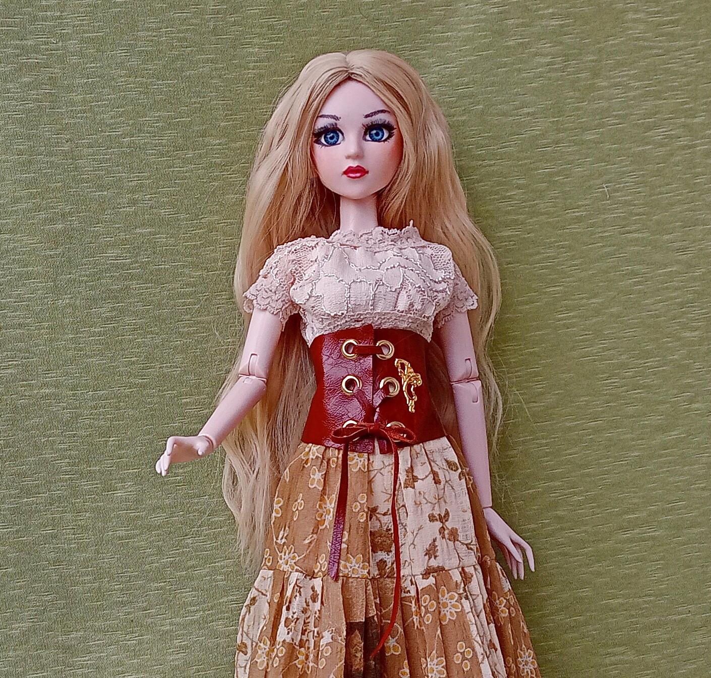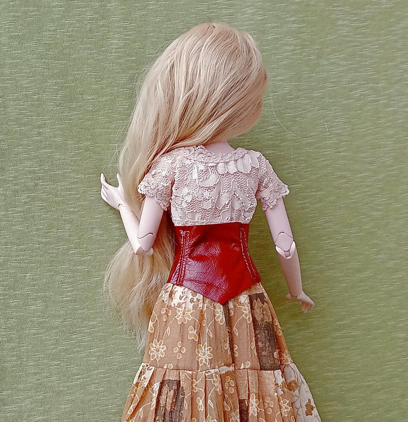 bjd 1/4 msd Brown leather steampunk underbust corset for any dolls 17” /45cm type Iplehouse fid and similar in size.
