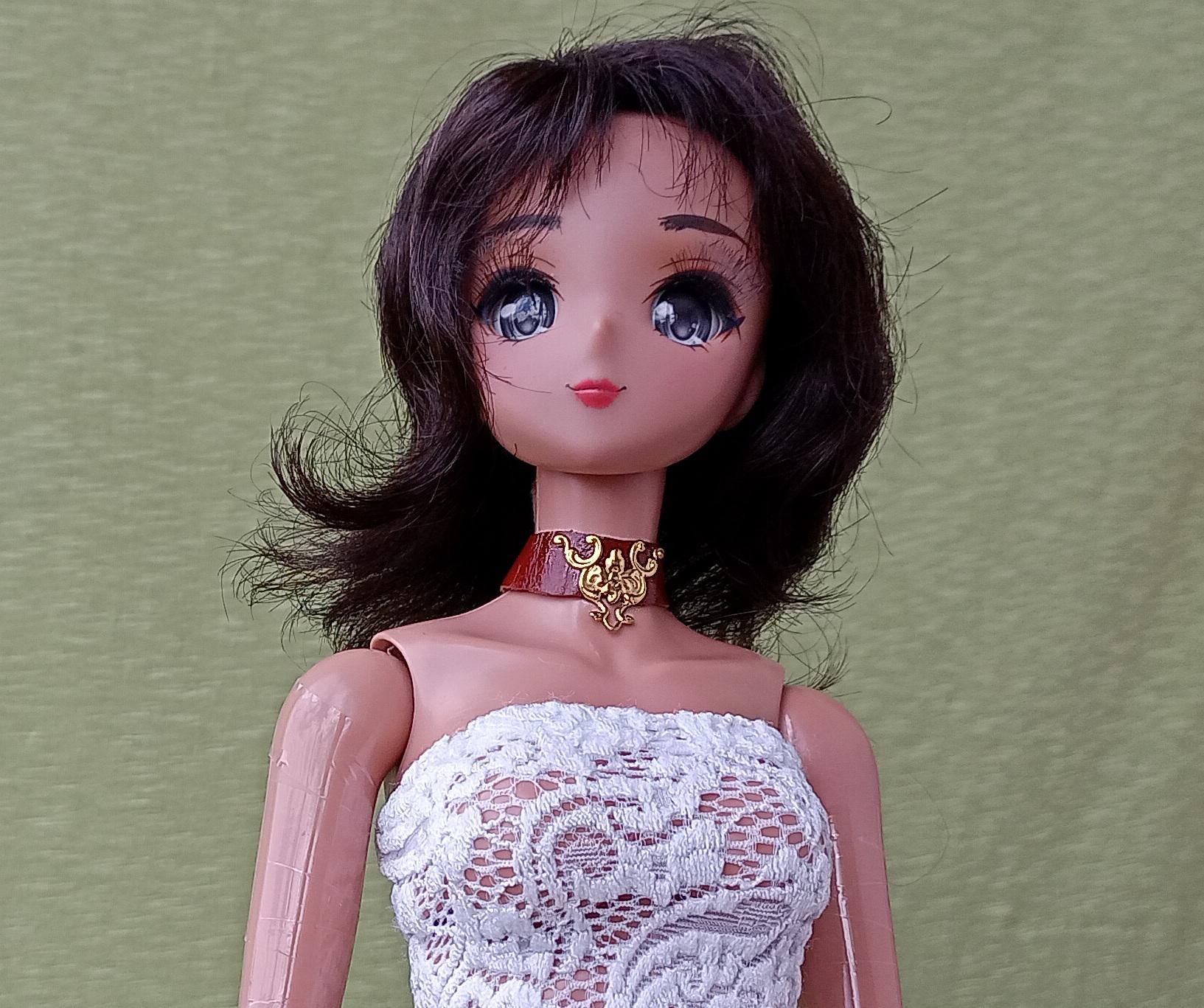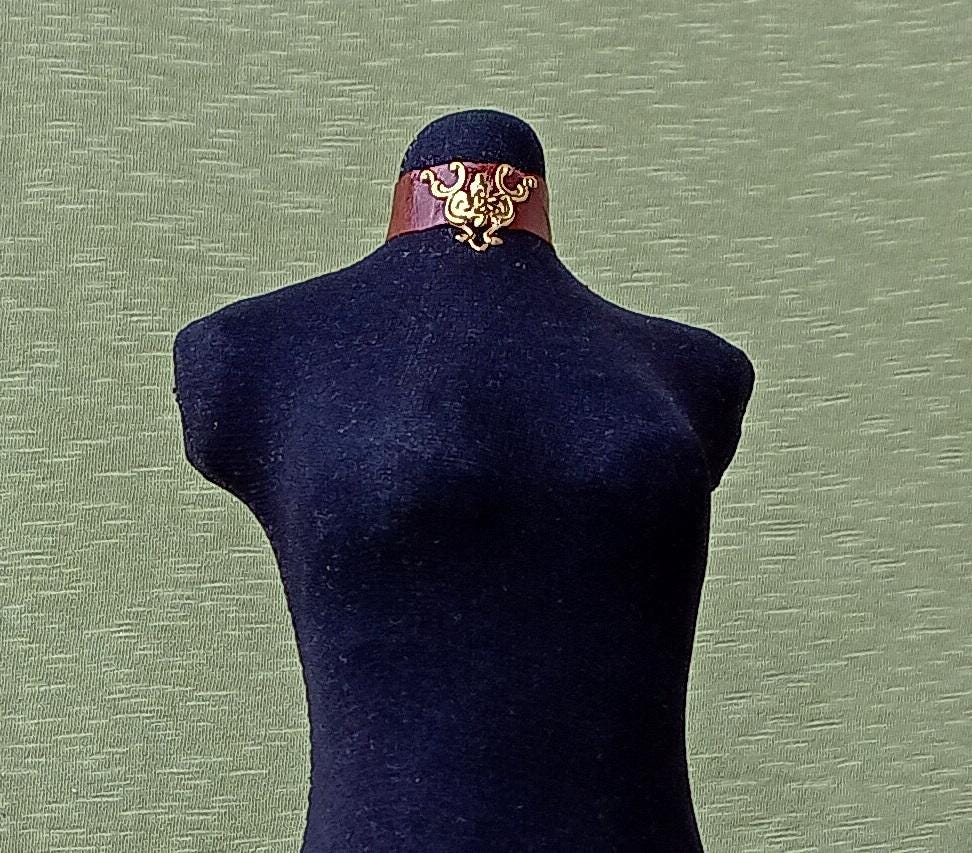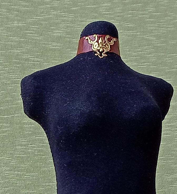 Smart doll leather necklace choker with gold decoration