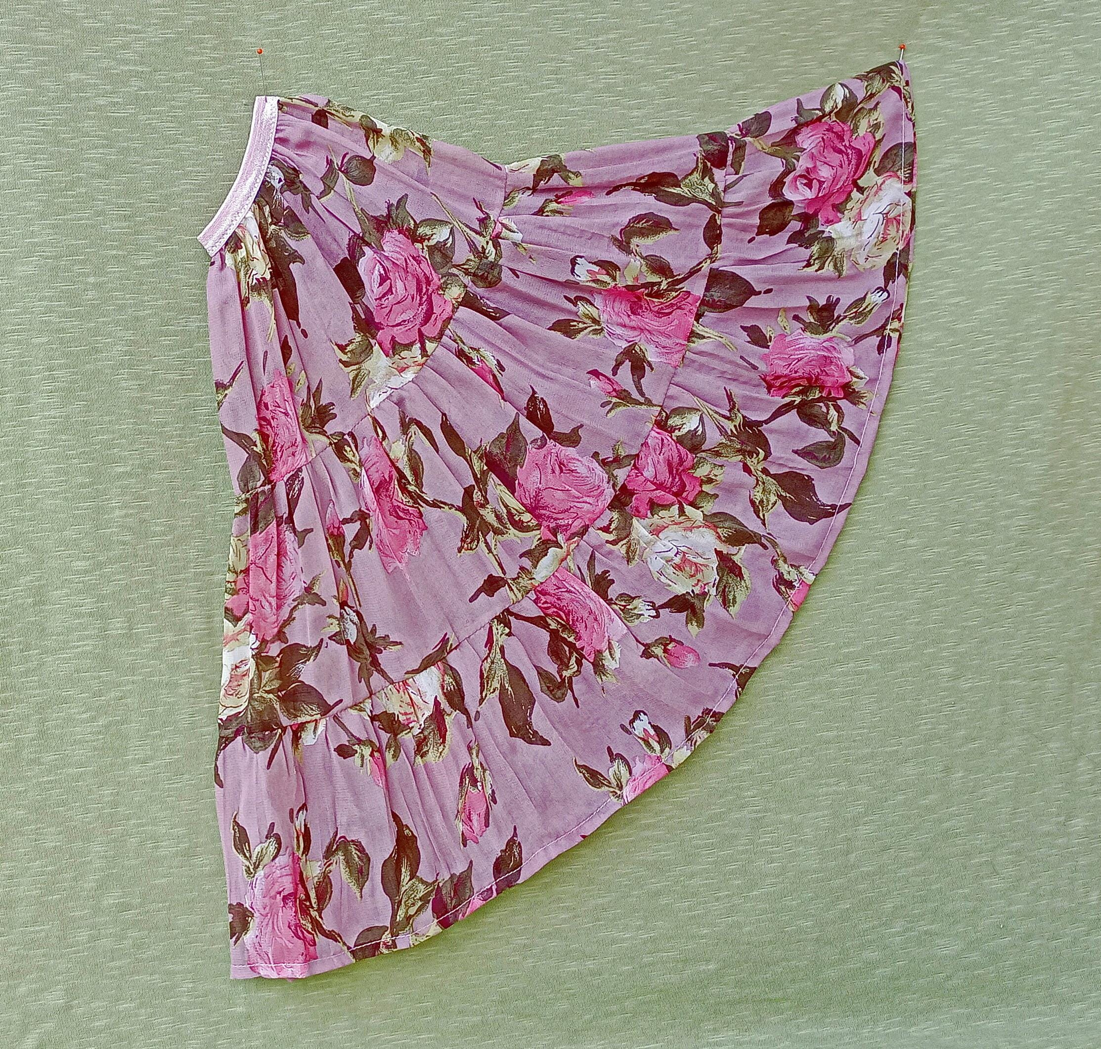 Skirt made of wrinkled pink chiffon. The waist of the skirt is elastic.